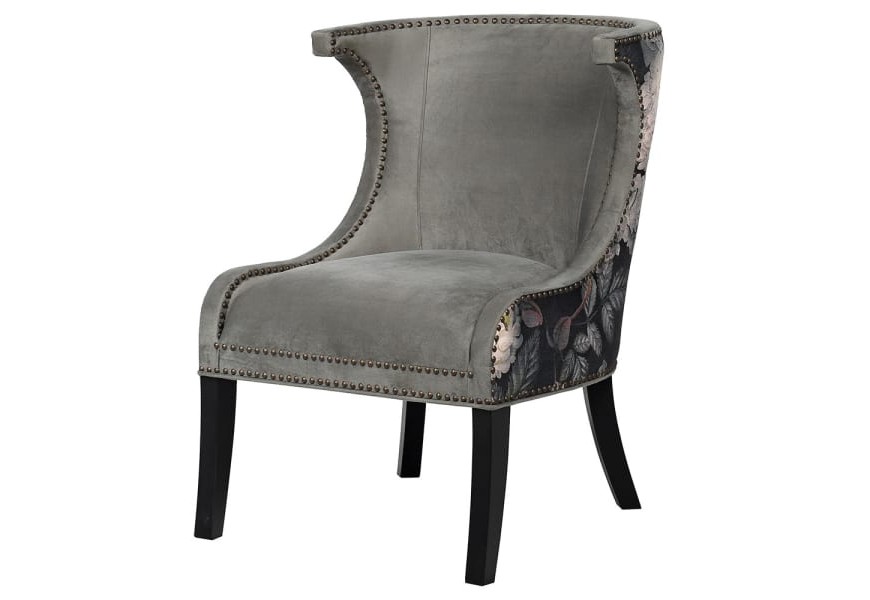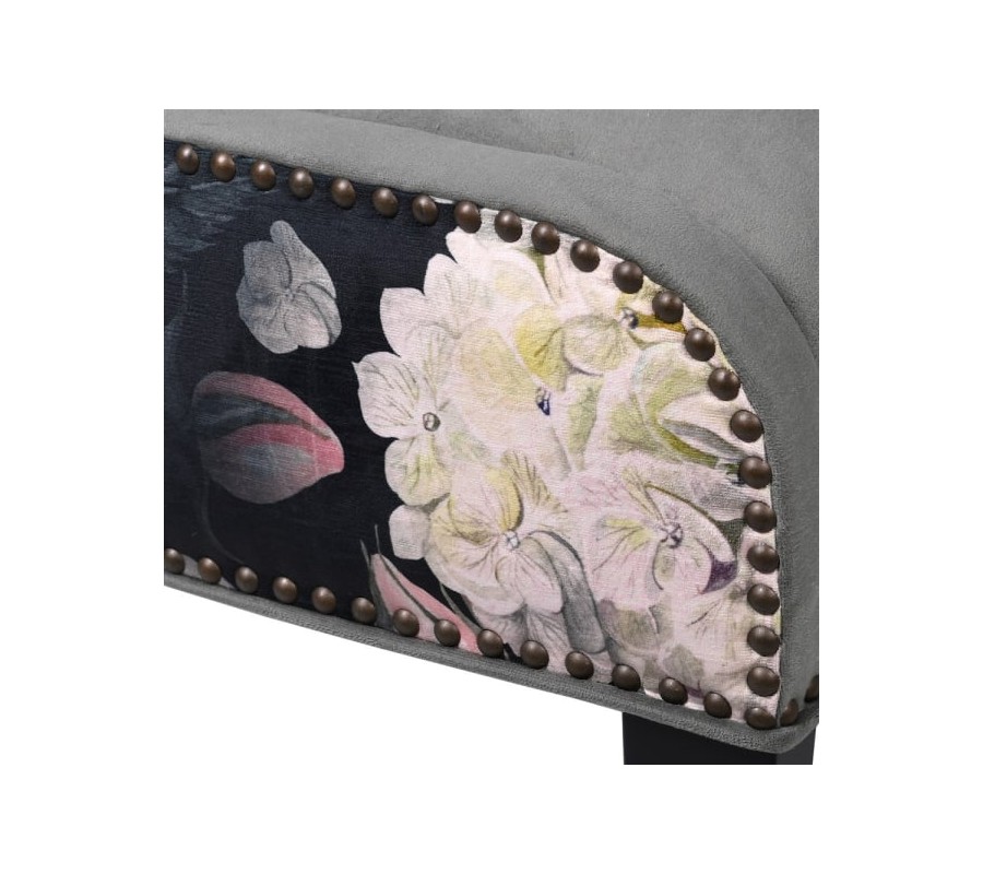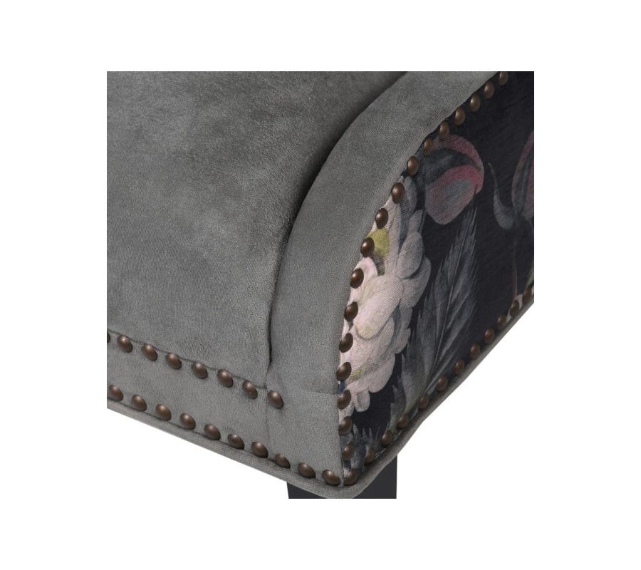 Dizajnové kreslo Pruitt so sivým poťahom a florálnym zdobením s kovovým vybíjaním 92cm