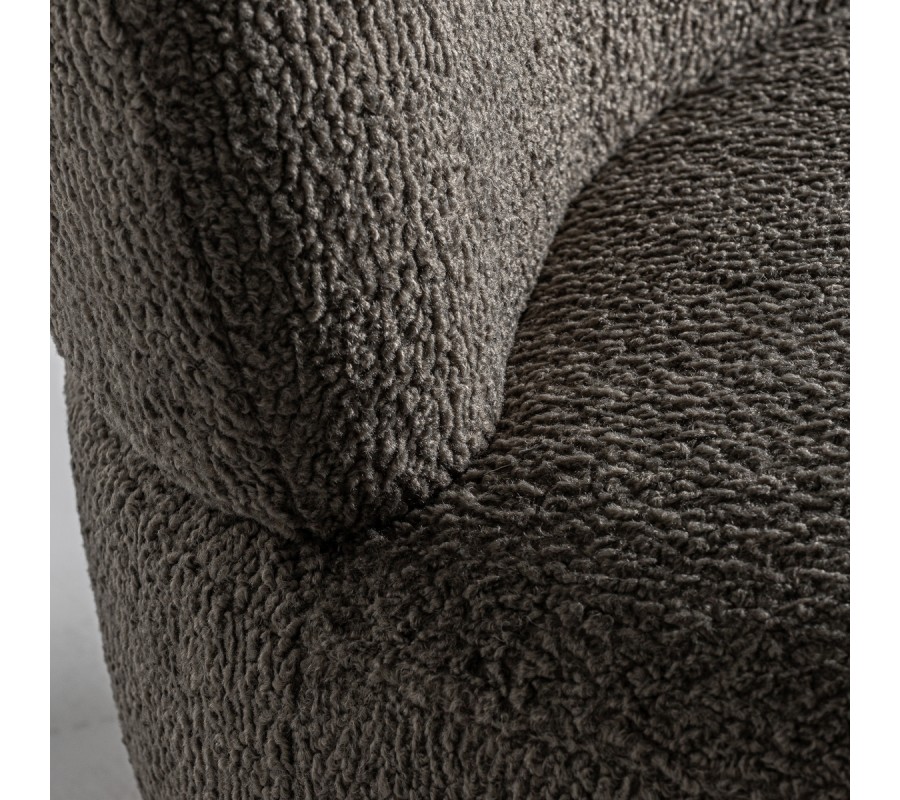 Štýlové kreslo Aurelia je moderným kúskom, ktorý predstavuje vhodné riešenie do dizajnových obývačiek, rovnako ako aj priestorov hotelových recepcií, nadčasových kaviarní či iných reprezentatívnych interiérov. Dominantným prvkom dizajnu kresla Aurelia je tmavosivý poťah z materiálu buklé, ktorý sa vyznačuje svojím unikátnym vzhľadom. Buklé tkanina je dnes v interiérovom dizajne populárna predovšetkým vďaka svojej jemnosti, mäkkosti a pútavému vlnenému vzhľadu. Univerzálna farebnosť umožňuje toto kreslo kombinovať aj v pestrejších interiéroch a dodáva mu tak nadčasový rozmer. Elegantné jemne zaoblené tvary kresla sú prispôsobené k dokonalému komfortu a zároveň tvoria štýlový minimalistický vzhľad, ktorý zaujme aj vizuálne. Okrúhla podstava z masívneho dreva v prírodnej hnedej farby dotvára moderny ráz kresla Aurelia, ktoré si určite zamilujete aj vy!