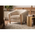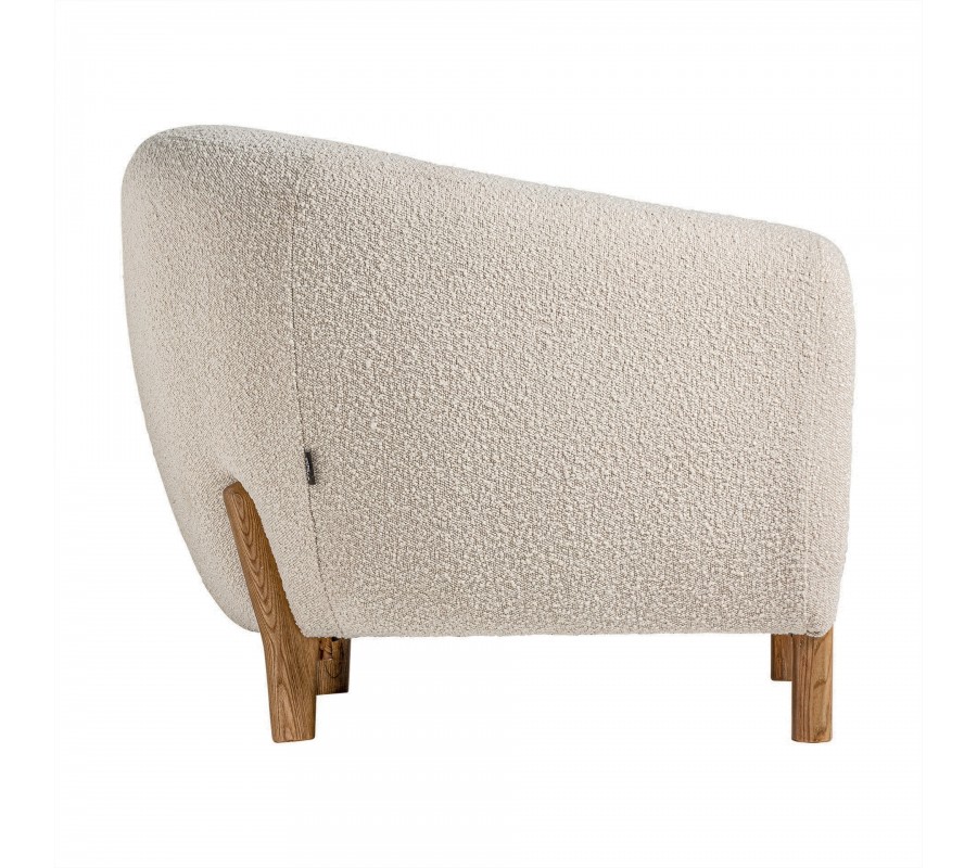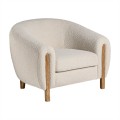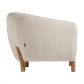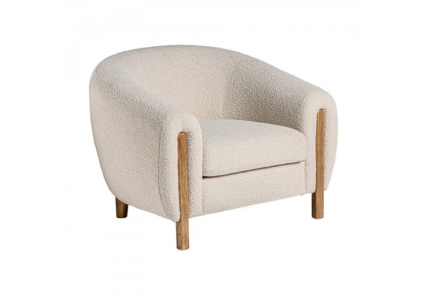Luxusné boucle kreslo Aurelia biele v art-deco štýle s hnedými nožičkami z dubového masívu 94cm