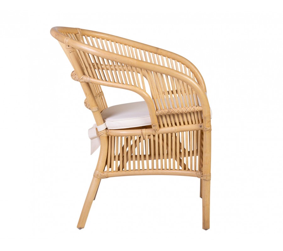 Štýlové kreslo Toreno je skvelou voľbou pre tých, ktorí radi trávia voľné chvle na terase či verande, kde si chcú dopriať dokonalý relax. Toto kreslo je vyrobené z ratanového výpletu v svetlohnedej farbe, ktoré do vašich priestoroch vnesie svieži prírodný nádych. Konštrukciu dopĺňa svetlý krémový podsedákl ktorý výborne poslúži na spríjemnenie sedenia. K vášmu dokonalého komfortu dopomôže aj zaoblené operadlo do tvaru U. Samotný ratanový výplet sa pýši precíznym spracovaním a vďaka ručnej výrobe je každý kúsok originál. Kreslo Toreno svojím elegantným vzhľad vkusne doplní nielen súkromné priestory, ale je tiež skvelým riešením na terasy štýlových kaviarní a barov.