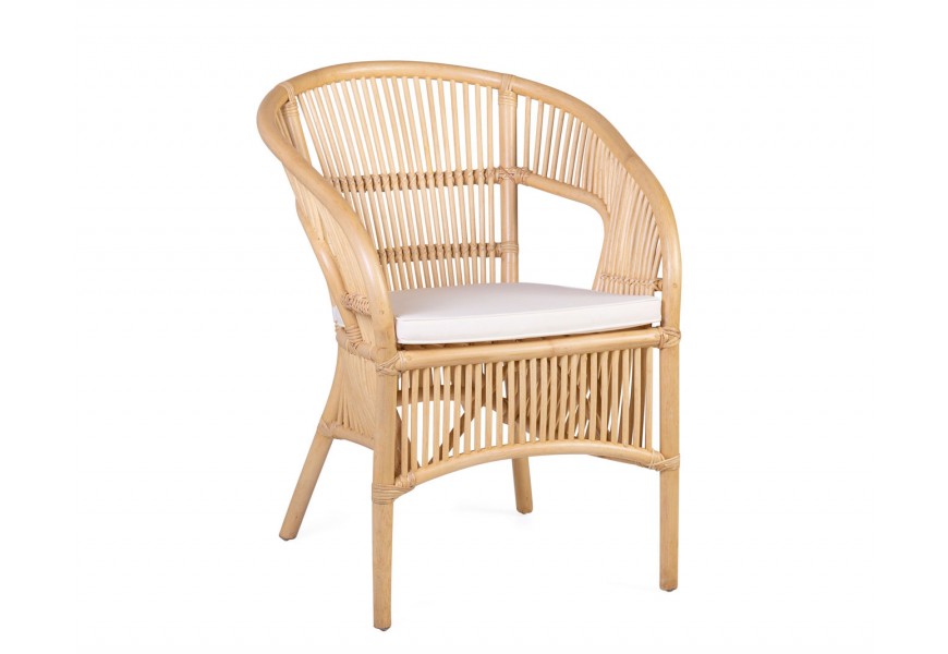 Ratanové kreslo Toreno hnedej farby so zaobleným operadlom a bielym podsedákom 81cm