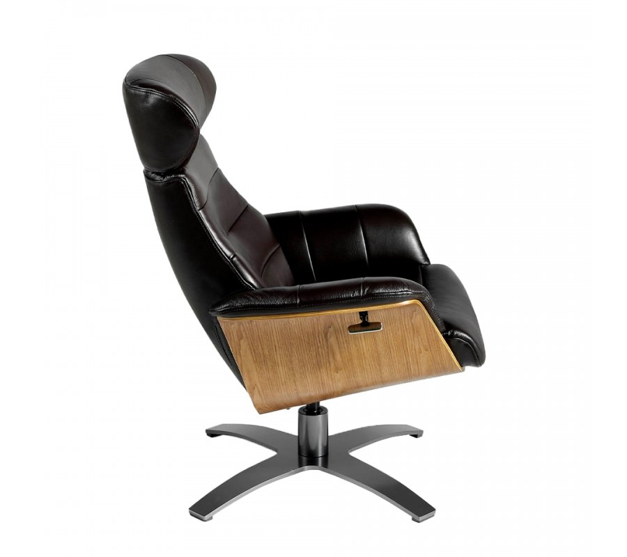 Kreslo Vita Naturale disponuje ergonomickým tvarom, s obopínajúcim sedákom, ktorého stabilitu zaručuje drevená konštrukcia, obohatená o kvalitné orechové dyhovanie v prírodne hnedej farbe, a taktiež aj oceľová konštrukcia s nožičkami v antracitovo sivej farbe. Pohodlie pri sedení bude umocnené polohovateľným, hojdacím mechanizmom, vďaka ktorému budete môcť nastaviť sklon operadla podľa Vašej potreby. Maximálny komfort doplní tvarovaná opierka hlavy a zaoblené bočné opierky.