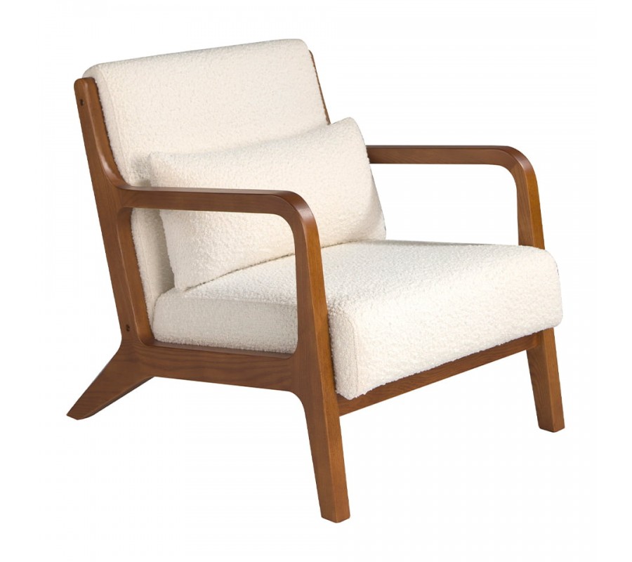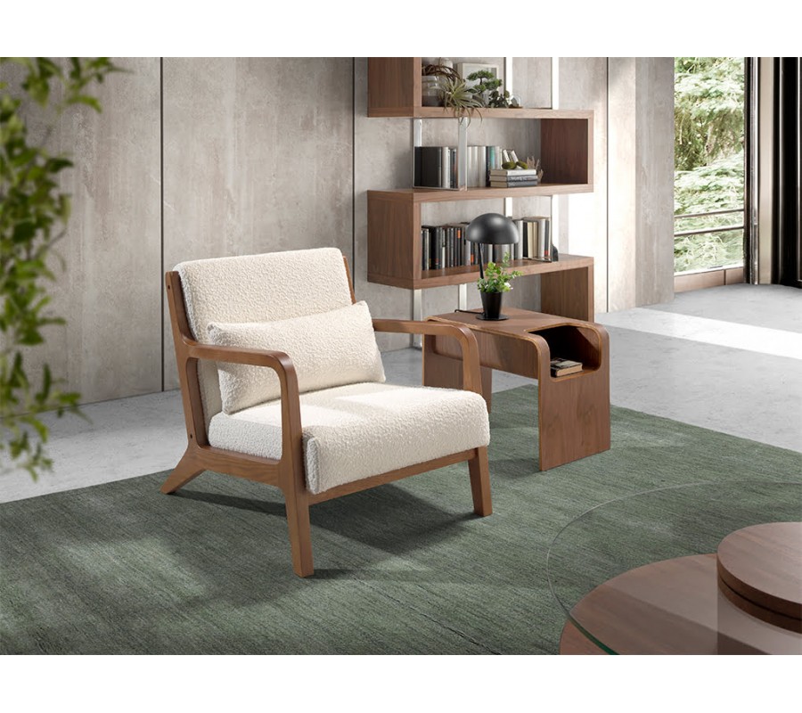 Spojenie čalúnenia bouclé s kvalitnou konštrukciou z dreva vo farbe orecha dodá vášmu priestoru moderný nádych elegancie, a zároveň zaručí dlhodobú trvácnosť a pevnosť. Luxusné kreslo Vita Naturale symbolizuje pohodlie, luxus a inovatívny dizajn, preto neváhajte a investujte do tohto kvalitného kusu nábytku.