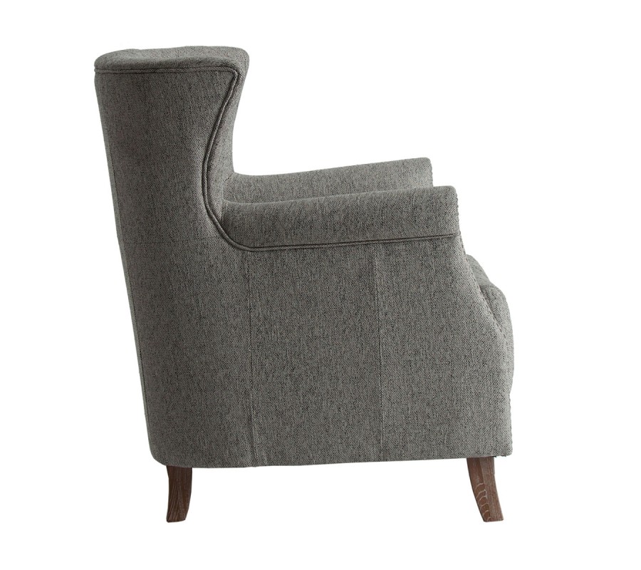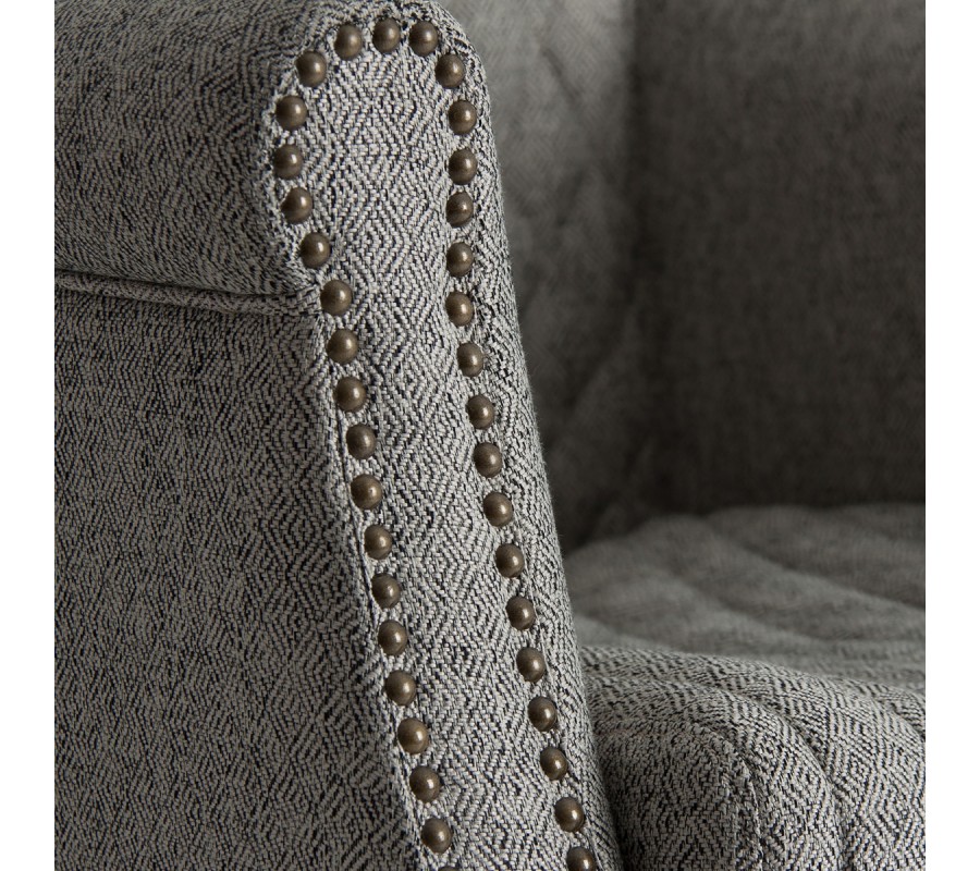 Elegancia kresla Margerie vkusne doplní váš klasicky ladený domov. Toto kreslo disponuje príjemným čalúnením v tmavosivej farbe, vďaka čomu je univerzálne a ľahko kombinovateľné aj v pestrejších priestoroch. Čalúnenie dopĺňa vkusné prešívanie a dizajnové zdobenie v podobe kovových cvokov na prednej časti. Vzniká tak honosný vzhľad, ktorý nádherne doplní obývačky zariadené tmavým masívnym nábytkom s výraznými zlatými či mosadznými doplnkami. Sivé čalúnenie kresla Margerie harmonicky dopĺňajú tmavé drevené nožičky z masívu. K vášmu pohodliu prispeje tvarované operadlo aj praktické podrúčky, a tak sa usadení v kresle budete cítiť ako v mäkkom objatí. Kreslo Margerie bude vaším nerozlučným spoločníkom pri večerných chvíľach s dobrou knihou či šálkou kávy s rodinou a priateľmi!