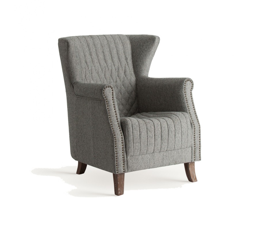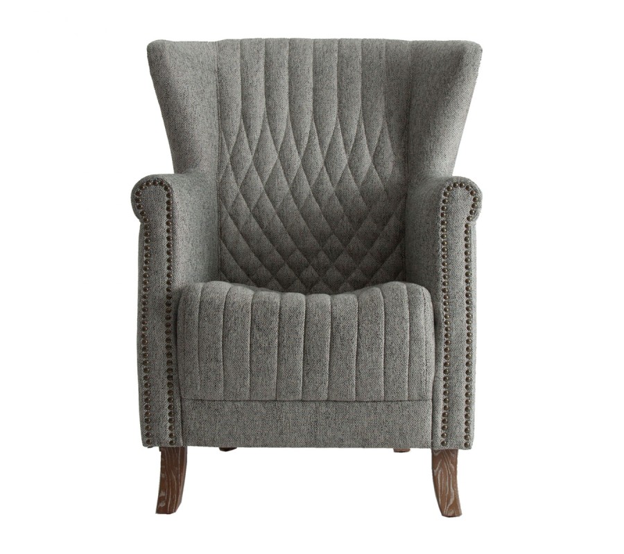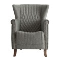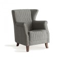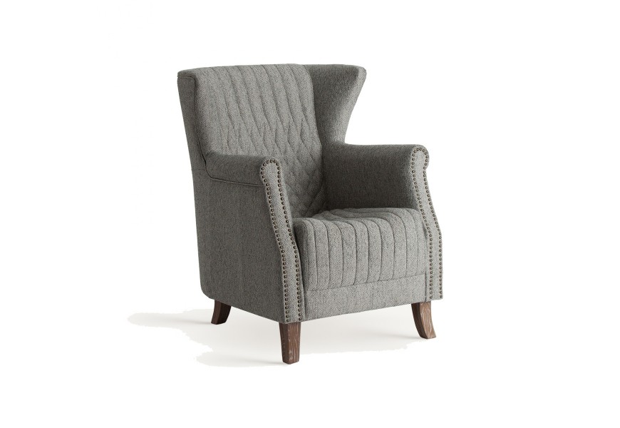 Klasické čalúnené kreslo Margerie so sivým poťahom s prešívaním a s masívnymi nožičkami 97cm