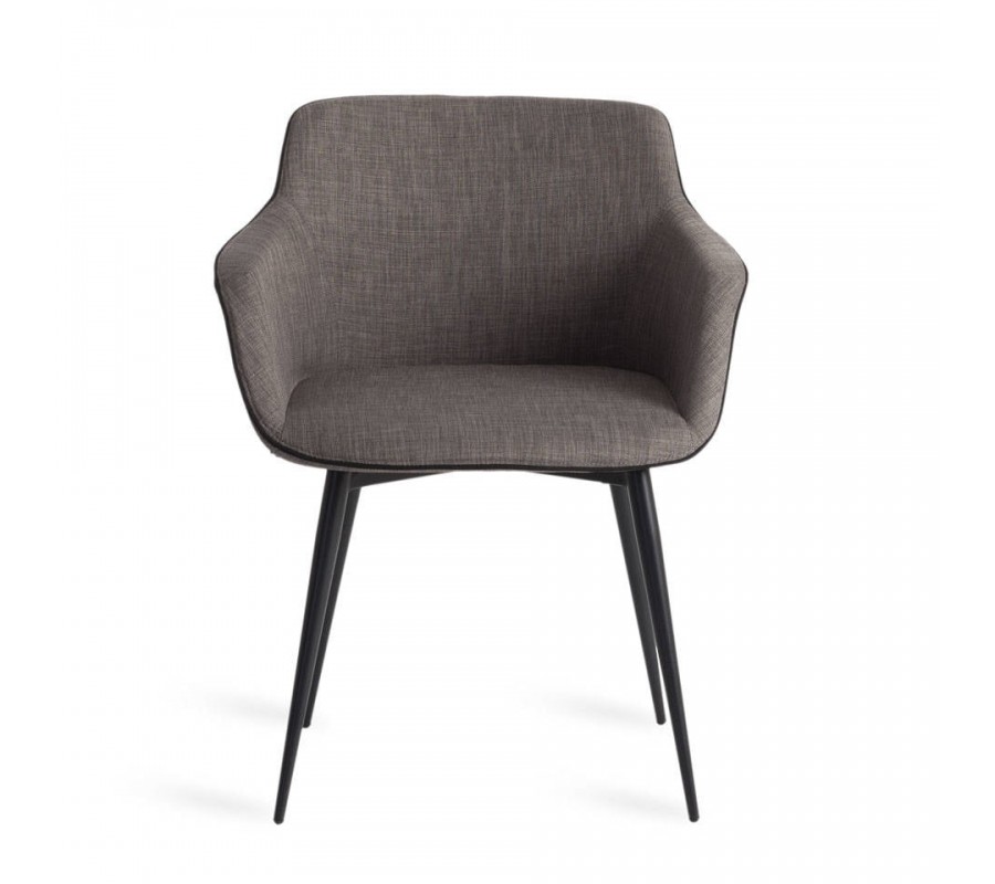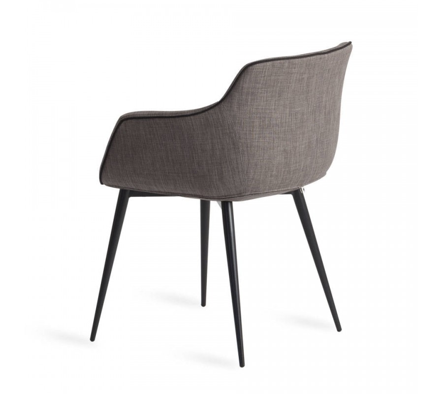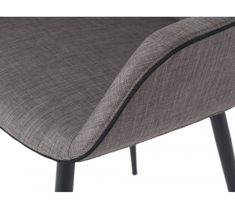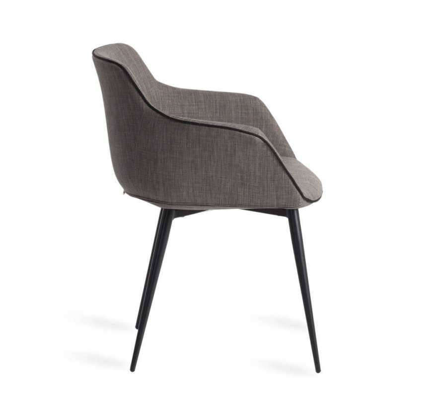 Moderná jedálenská stolička Forma Moderna ponúka svoje príjemné, textilné čalúnenie v sivej farbe, ktoré je obohatené o čierne dizajnové prešívanie, prechádzajúce na vrchu opierok. Minimalistický a tmavý dizajn jedálenskej stoličky doplnia štyri oceľové nožičky v čiernej farbe, ktoré dodajú eleganciu a spomenutý industriálny nádych.