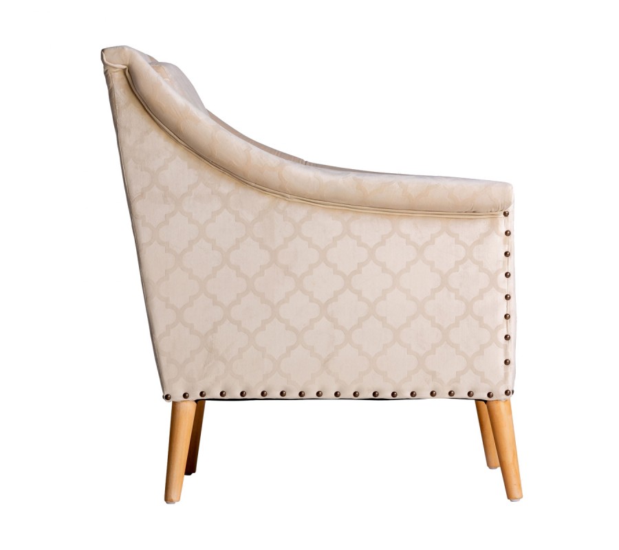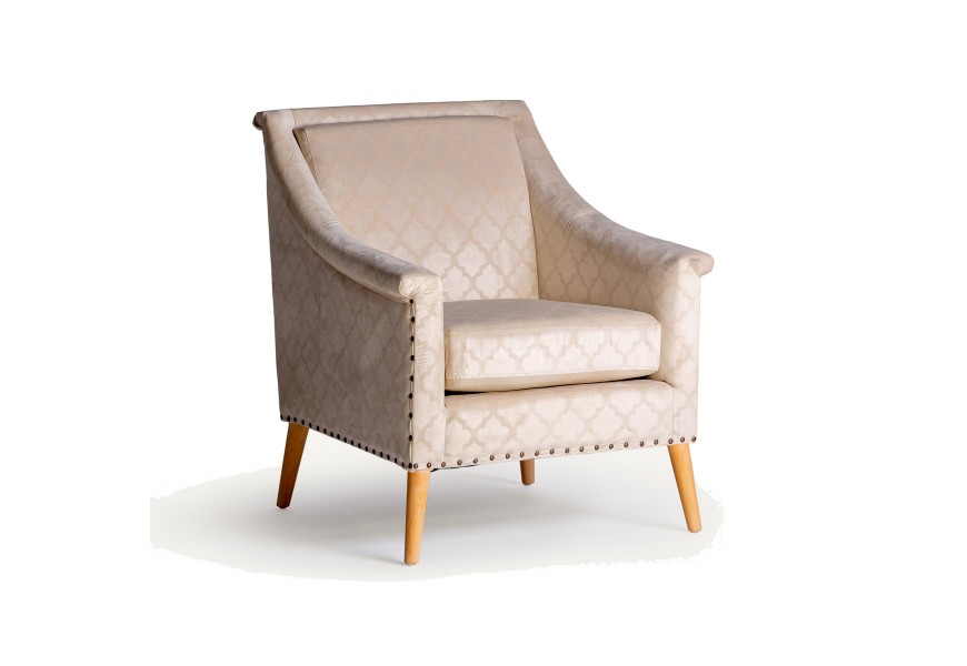 Klasické kreslo Perugia v béžovej farbe s jemným vzorom a drevenými nožičkami 85cm