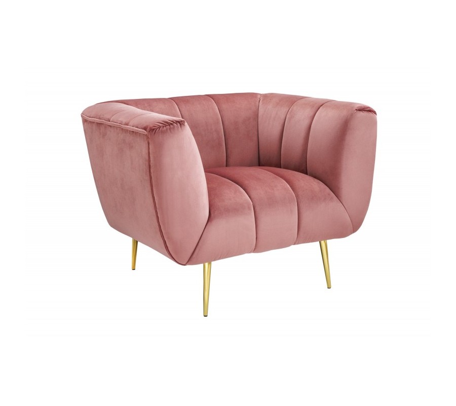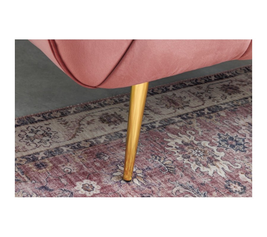Art deco moderné kreslo Vermont v staroružovom zamatovom čalúnení na zlatých nožičkách 105cm