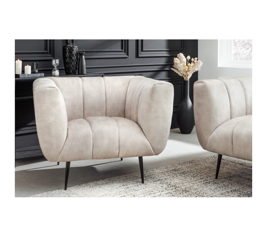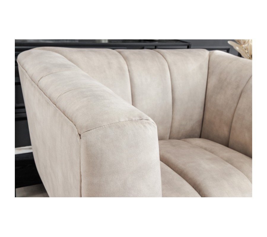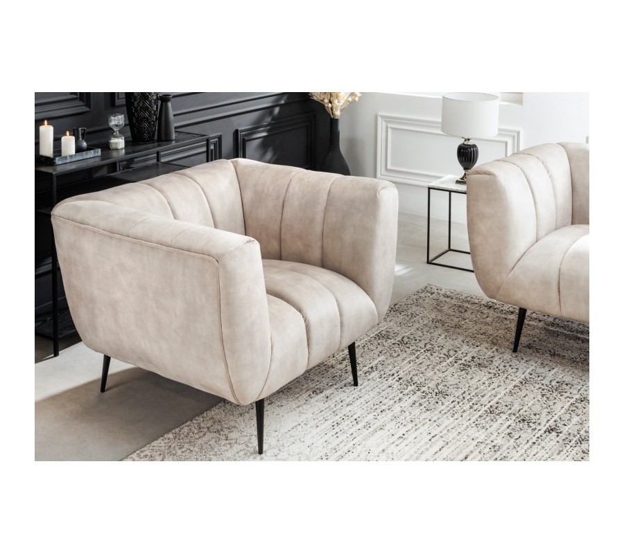 Art deco moderné kreslo Vermont v krémovom champagne čalúnení na čiernych nožičkách 106cm