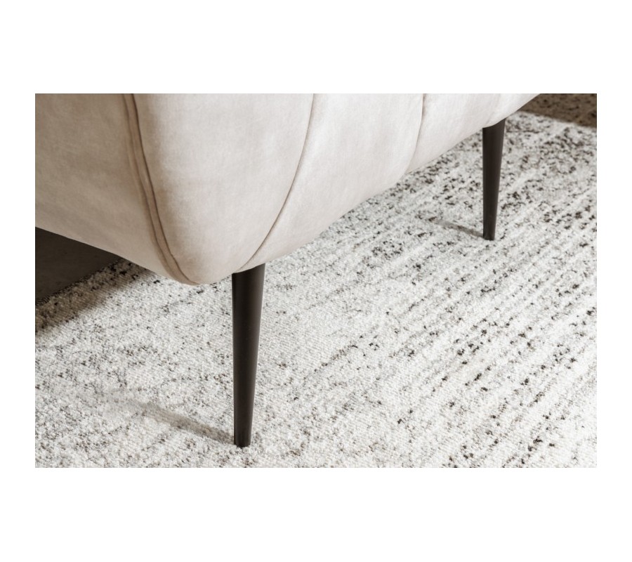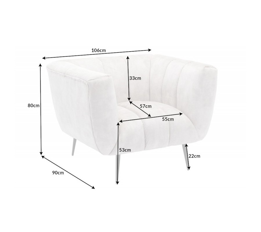 Dizajnové kreslo Vermont v unikátnom art deco modernom prevedení pôsobí elegantným a sofistikovaným dojmom. Čalúnené prevedenie vás poteší dokonale jemným zamatovým poťahom v opantávajúcej champagne krémovej, elegantne pôsobiacej farbe. Farebné prevedenie podnecuje tie najpríjemnejšie pocity, ktoré si chce v pohodlí domova vychutnať každý z nás. Konštrukcia postavená na štyroch kovových nožičkách v čiernom matnom prevedení je navrhnutá pre vaše pohodlie a oddych po náročnom dni. Celkový dizajn prekrásne dopĺňa vertikálne prešívanie čalúnenia. Kreslo sa bude krásne vynímať v art deco či moderne ladených obývačkách alebo vstupných halách v nestarnúcej sivej či čiernej farbe so zlatými alebo čiernymi doplnkami v podobe konferenčného stolíka s mramorom či sklenenou vrchnou doskou v päťuholníkovom tvare a prepletanou konštrukciou. Kreslo z kolekcie Vermont okrem pohodlia ponúka nadčasový a jednoducho kombinovateľný dizajn podporujúci kreativitu pri výbere doplnkov či zvyšných kúskov nábytku.