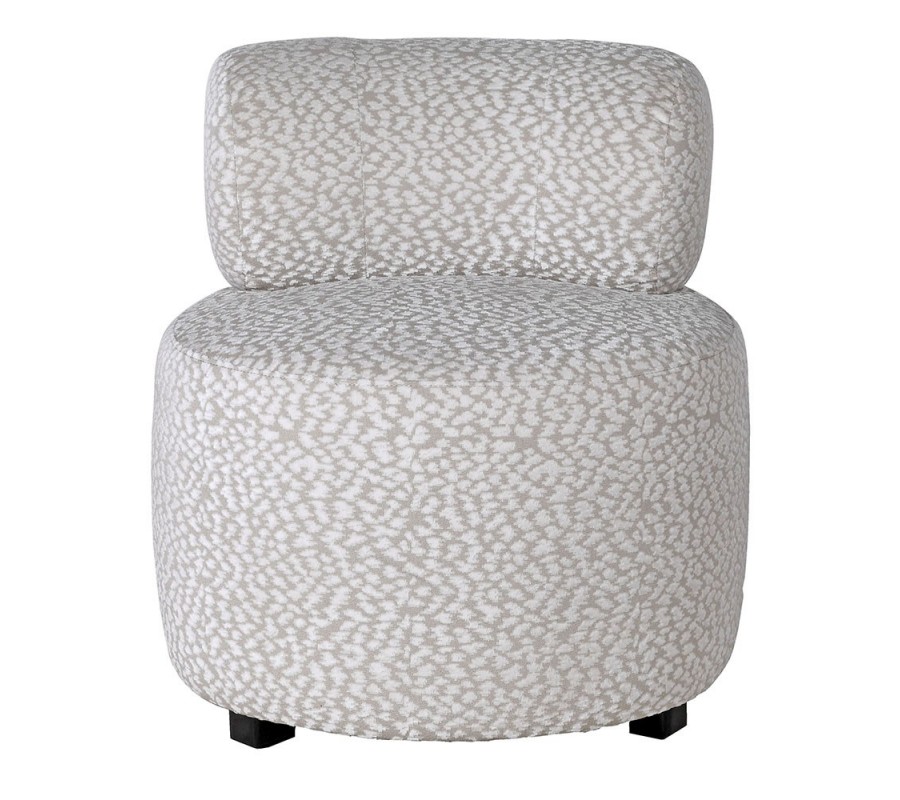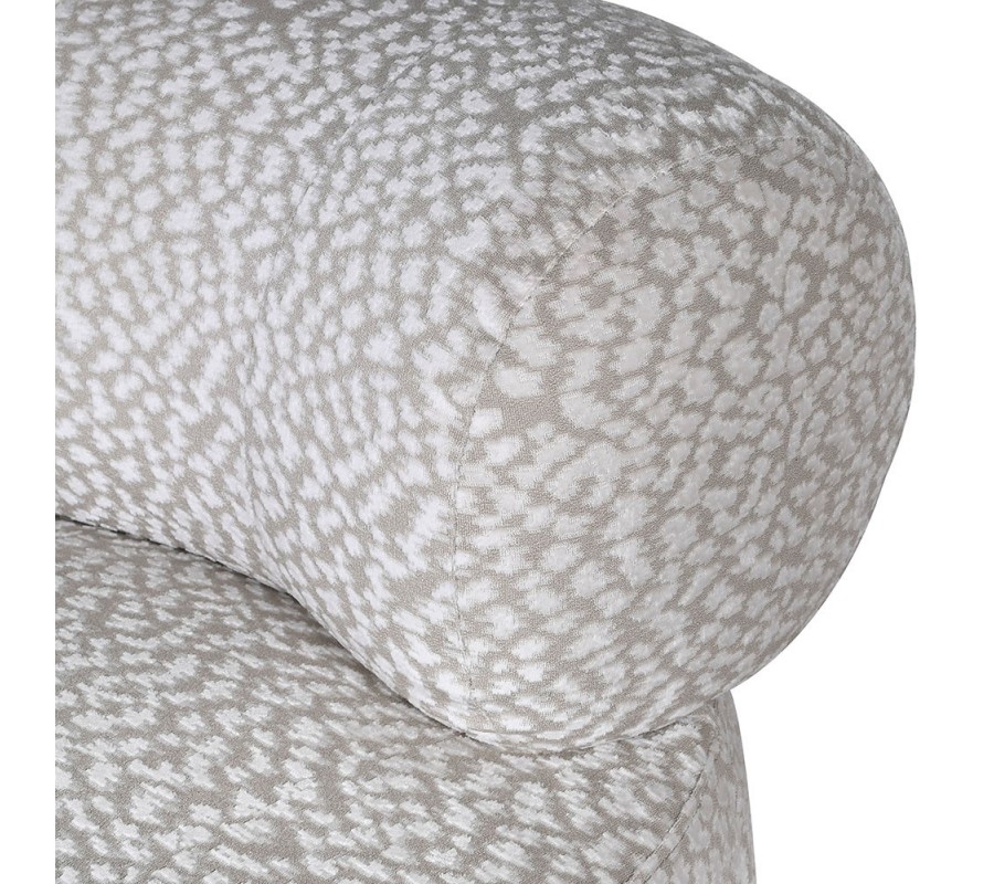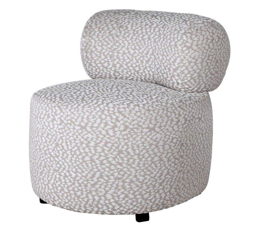 Štýlový dizajn a textilné čalúnenie kresla v sivej farbe obohacuje jemné vzorovanie v bielej farbe, ktoré osvetlí vzhľad kresla. Moderné kreslo Betsy sa nesie v okrúhlom tvare, ktorému dominuje bohato polstrovaná sedacia časť. Tá je doplnená rovnako mäkkou a pohodlnou chrbtovou opierkou v zaoblenom tvare.