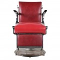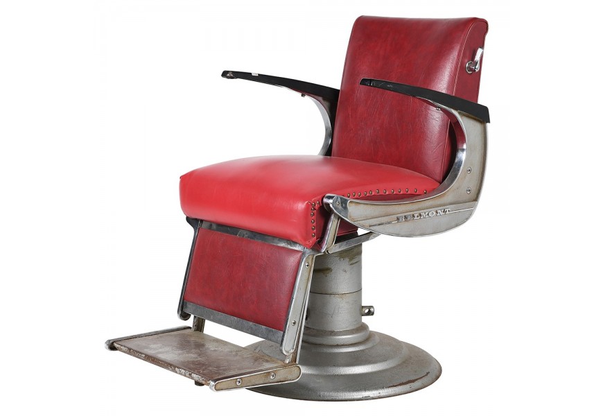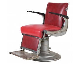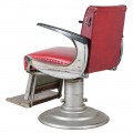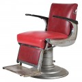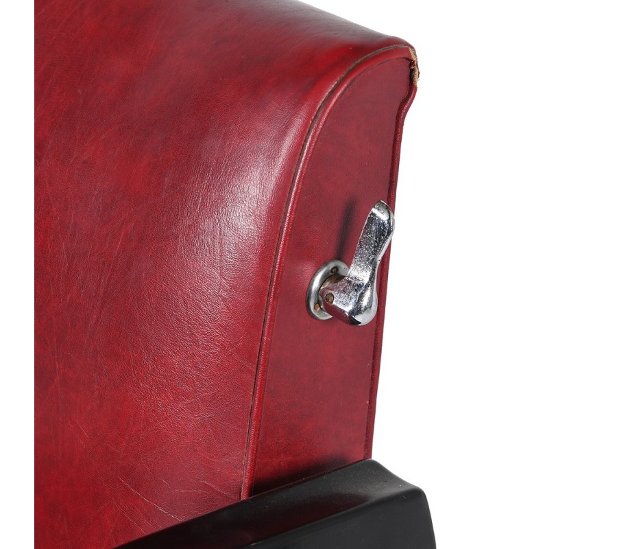 Vintage kožené barber kreslo Rebell v červenej farbe s kovovou konštrukciou s nastaviteľným sedením 92cm