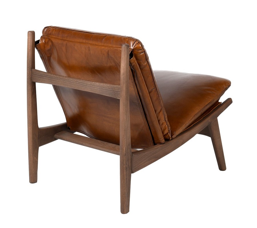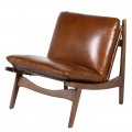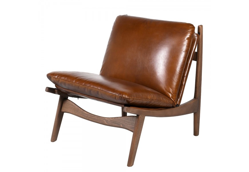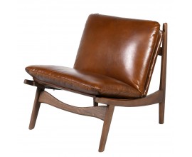 Vintage kožené kreslo Elio hnedej farby s drevenou konštrukciou 71cm