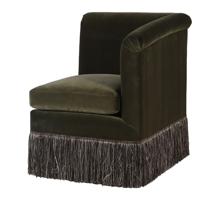Luxusné pravé rohové kreslo Fring zelený zamat 83cm