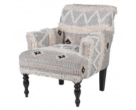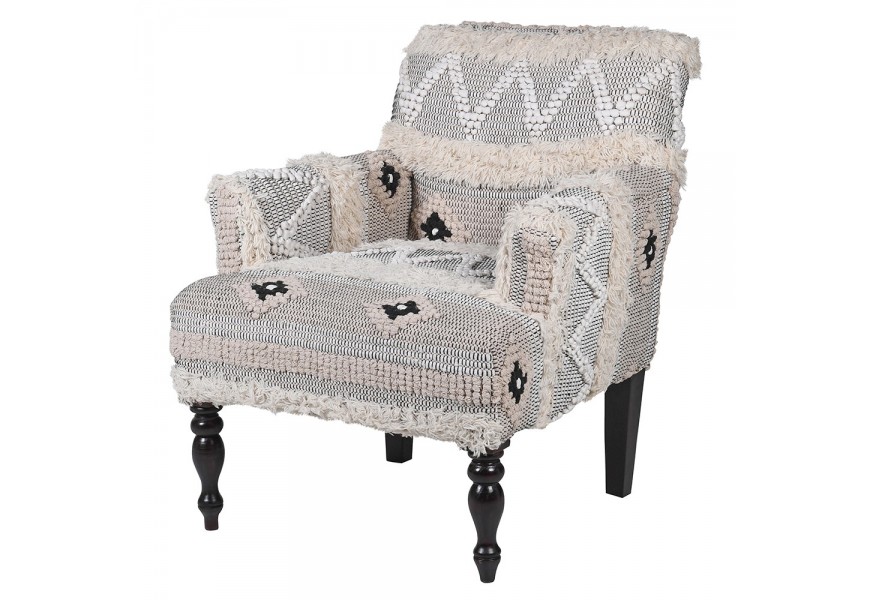 Luxusne orientálne kreslo Colia s vlneným čalúnením a orientálnym dizajnom s konštrukciou z mangového dreva 89cm