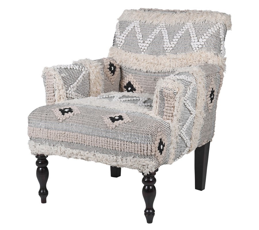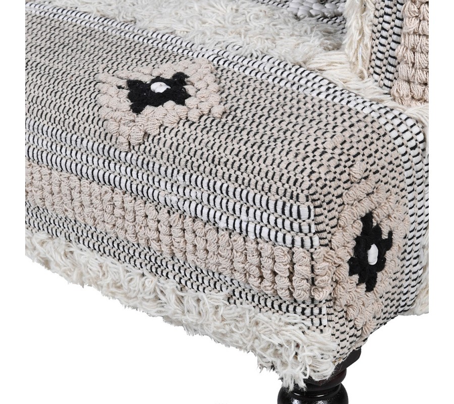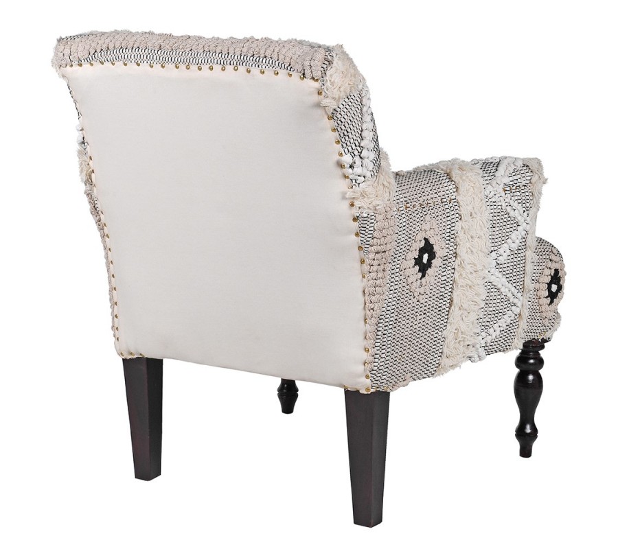 Vitajte v svete nostalgie a elegancie s naším vintage kreslom Colia, ktoré kombinuje štýlový nádych minulosti s exotickým vzhľadom. Orientálne vlnené čalúnenie tohto kresla neponúka len pohodlné sedenie, ale dokaže zahaliť váš priestor do atmosféry starodávneho mystéria. Orientálne vlnené čalúnenie tohto kresla je ako umelecký príbeh, ktorý oživuje každý detail. Použitá vlnená látka nie je len materiálom, ale aj vstupom do roviny umeleckého diela, ktoré nesie so sebou bohatú históriu a tradície. Farby a vzory vychádzajúce z orientálnej estetiky pridávajú kreslu exotický nádych. Vlnené čalúnenie nie je len vizuálnym lákadlom, ale aj pohodlným zážitkom. Jeho prirodzená schopnosť regulovať teplotu zabezpečuje komfortné sezenie v každom ročnom období. Konštrukcia a nožičky vyrobené z mangového dreva dodávajú tomuto kreslu robustný základ a prírodný dotyk. Jedna zaujímavosť spočíva v tom, že jeden pár nožičiek je vyrezávaný, čo pridáva umelčivý nádych, zvýrazňujúc jedinečný charakter tohto kúsku nábytku. Jeho dizajn evokuje doby minulé a zároveň zohľadňuje moderné pohodlie. Umiestnite si ho do obývačky alebo knižnice, kde sa stane nielen miestom relaxácie, ale aj konverzácie a spomínaní na časy, kedy nábytok mal svoju vlastnú, ručne vyrobenú dušu.