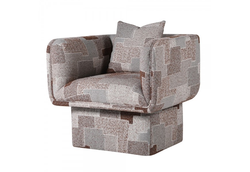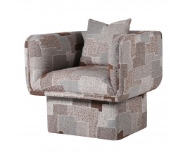 Moderné kreslo Bimba s geometrickým vzorom sivo-hnedé 85cm