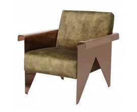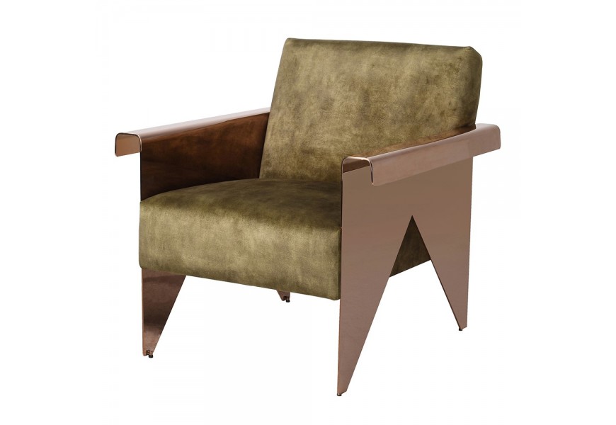 Luxusné moderné kreslo Triangulo s dizajnovými opierkami na ruky v bronzovej farbe olivová zelená 80 cm