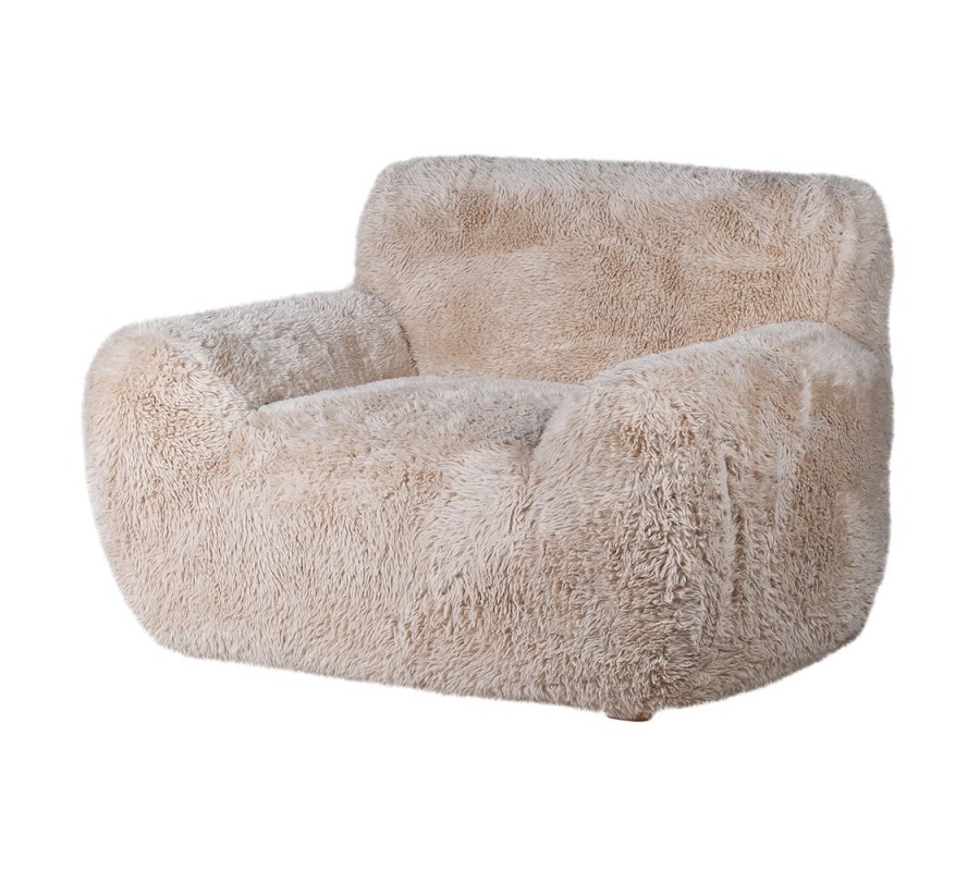Luxusné moderné kreslo Arctica s čalúnením z umelej kožušiny piesková béžová 125 cm