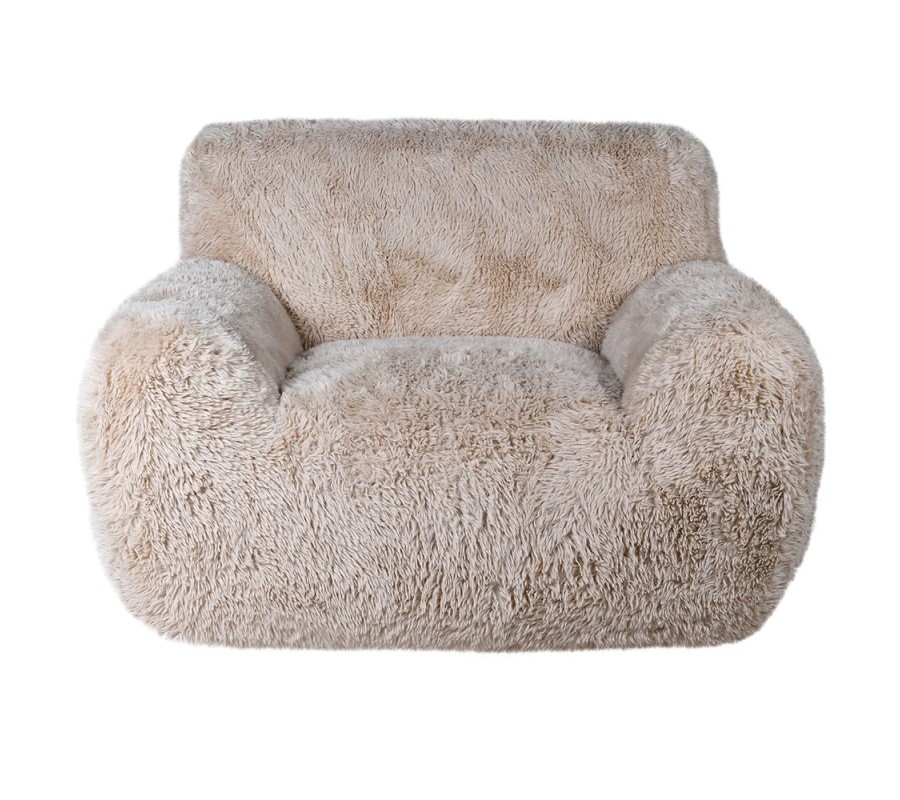 Luxusné moderné kreslo Arctica vás na prvý pohľad upúta svojím jedinečným čalúnením z umelej kožušiny. Vďaka hrubým opierkam a zaoblenému tvaru pôsobí masívnym dojmom a mäkká kožušina s dlhým vlasom láka do tohto pohodlného a telého objatia. Môžete ho doplniť sedačkou z rovnakej kolekcie, ktorú nájdete v našej ponuke, ale vďaka univerzálnej pieskovej béžovej farbe ho ľahko skombinujete aj s iným nábytkom. Je vhodné napríklad do obývačky s výraznými farebnými doplnkami, ako napríklad vankúš či koberec. Pokiaľ chcete, aby bolo kreslo dominantným prvkom, môžete k nemu umiestniť napríklad jednoduchý stolík, čím vytvoríte nadčasový dizajn. Môžete ho umiestniť aj do spálne či moderne zariadenej chaty spolu s masívnym dreveným nábytkom, kde vynikne štruktúra poťahu, ale napríklad aj do detskej izby, kde bude pripomínať obrovského mäkkého plyšového medvedíka. Pohodlie Vám zaručí penové čalúnenie na pevnom dubovom ráme.