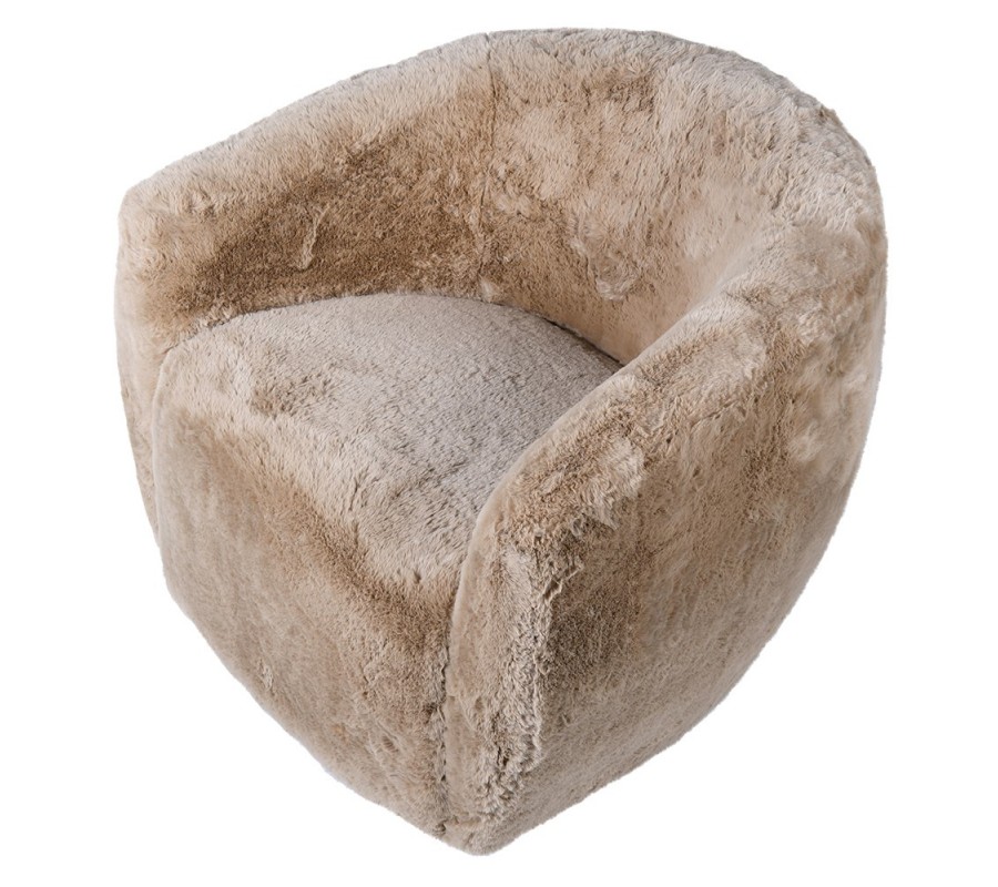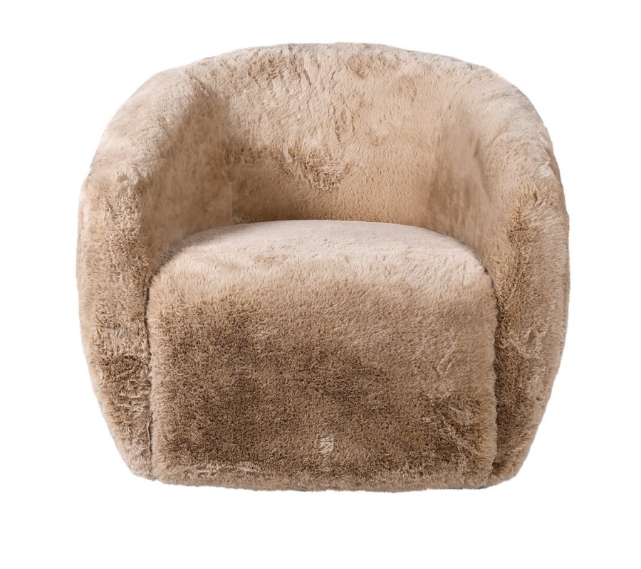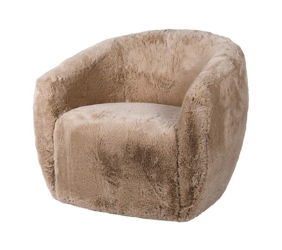 Štýlové art deco kreslo Venti so svetlohnedým poťahom z umelej kožušiny 79cm