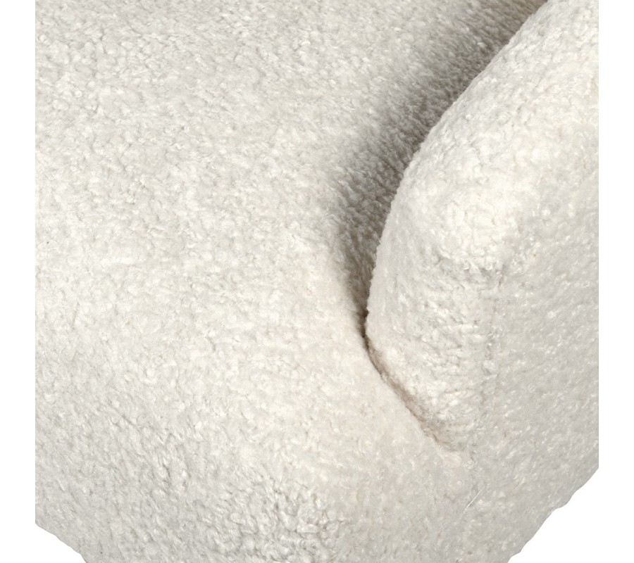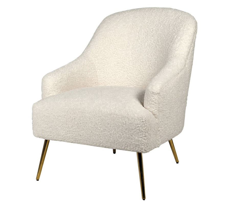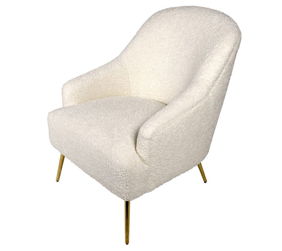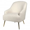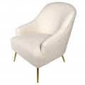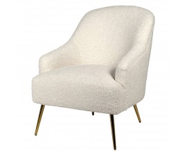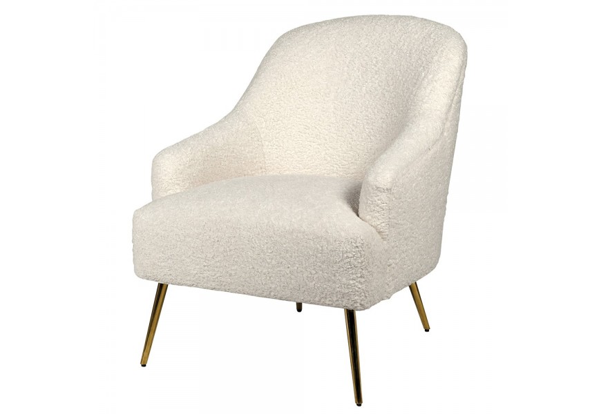 Art deco kreslo Henry s bielym buklé poťahom a zlatými nožičkami z kovu 85cm