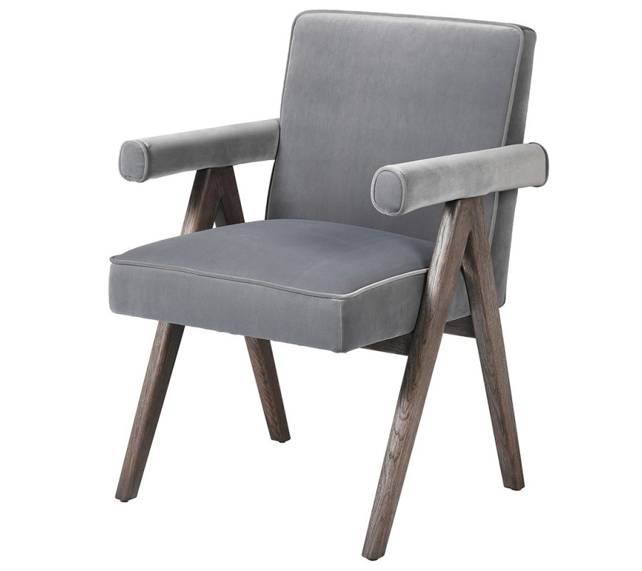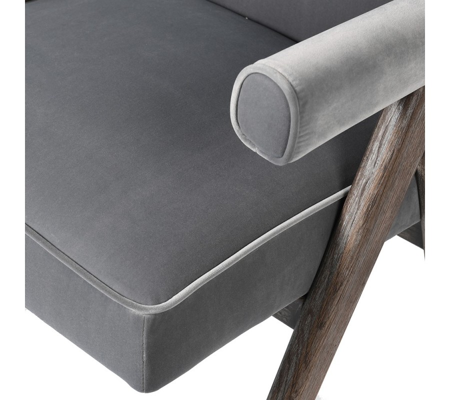 Štýlové kreslo Niervana sa vyznačuje svojím jedinečným vzhľadom s jemným nádychom vintage štýlu. Tento kúsok je ideálnym na doplnenie pracovne, obývačky či spoločenských reprezentatívnych priestorov. Kreslo disponuje konštrukciou z masívneho dreva s prírodnou hnedou povrchovou úpravou. Tvorí ju dvojica zošikmených nôh po oboch stranách, ktoré zároveň slúžia ako opora pre praktické podrúčky. Sedacia časť, operadlo i podrúčky dopĺňa mäkké zamatové čalúnenie v univerzálnej sivej farbe. Kreslo Nierva aje tak nielen esteticky príťažlivé, ale aj príjemné na dotyk a pohodlné na sedenie pri práci, káve s priateľmi či dlhých večeroch s dobrou knihou. Kreslo Nierva aodporúčame umiestniť do vintage alebo vidiecky ladených priestorov. Vďaka jeho univerzálnemu farebnému prevedeniu nebudete mať problém s jeho doplnením ani do farebnejšie ladených priestorov. Pre dokonalé zosúladenie vášho priestoru však odporúčame predovšetkým kombináciu s naturálnymi farbami a nábytkom z prírodných materiálov.