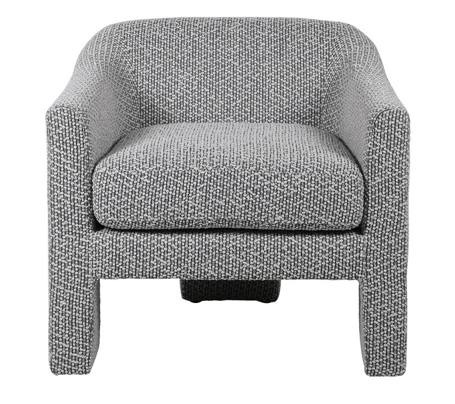Vstúpte do sveta moderného pohodlia s naším sivým čalúneným kreslom v štýle klubovky, ktoré sa vyznačuje elegantným dizajnom a jedinečnými trojnôžkovými nožičkami.
