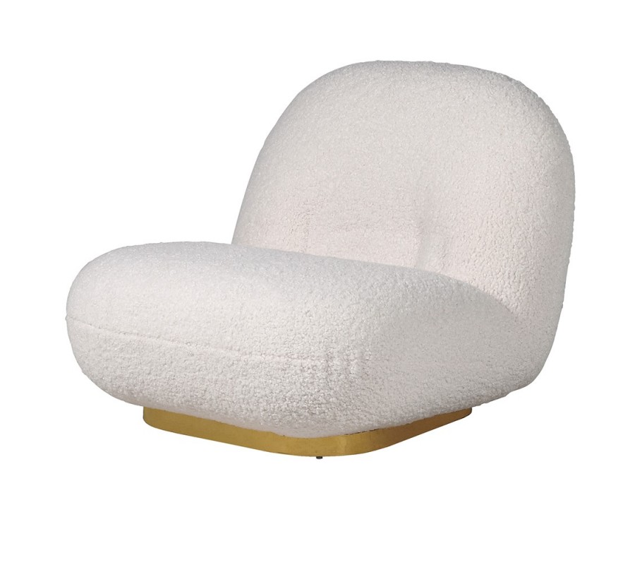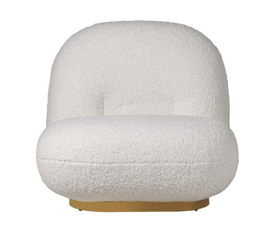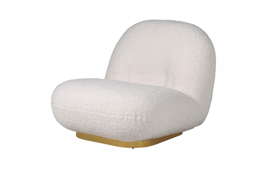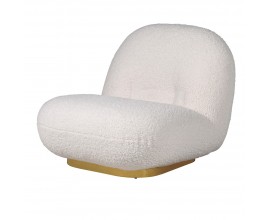 Art-deco buklé kreslo Shian bielej farby so zlatou kovovou podstavou 82cm