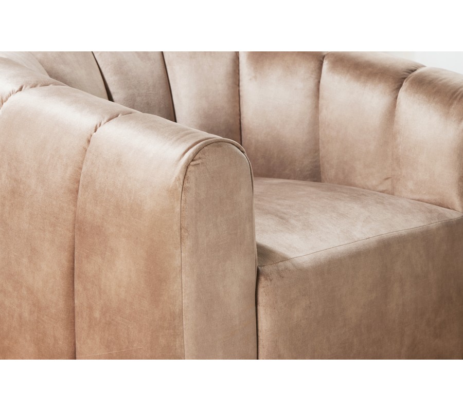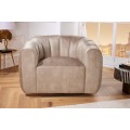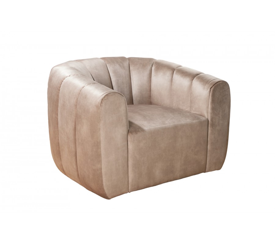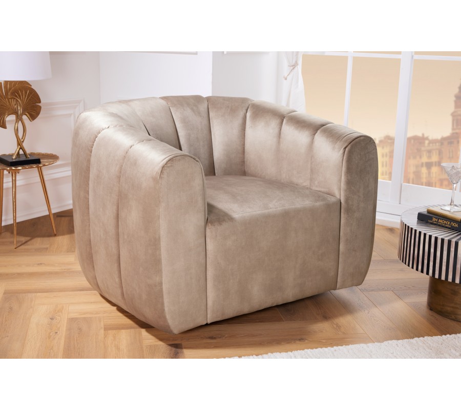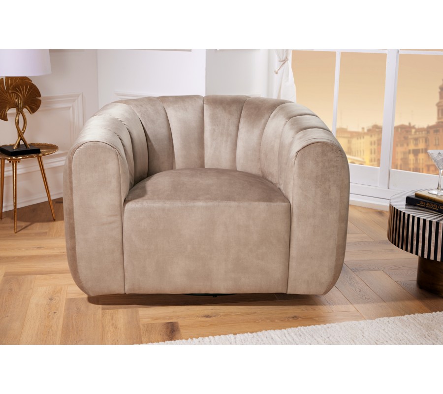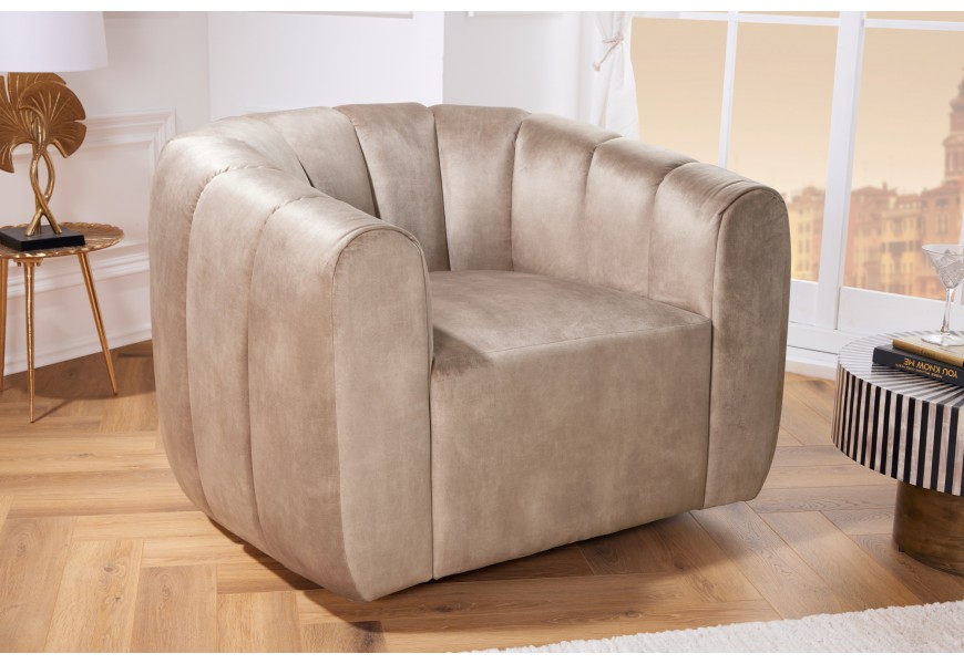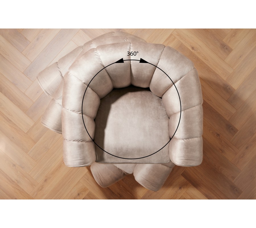 Moderné čalúnené kreslo Alis v zlato béžovej farbe s prešívaním na zamatovom poťahu a otočnou nohou 100 cm