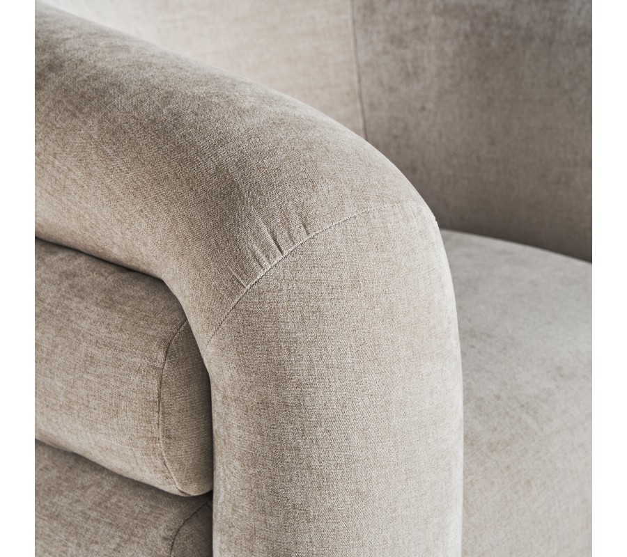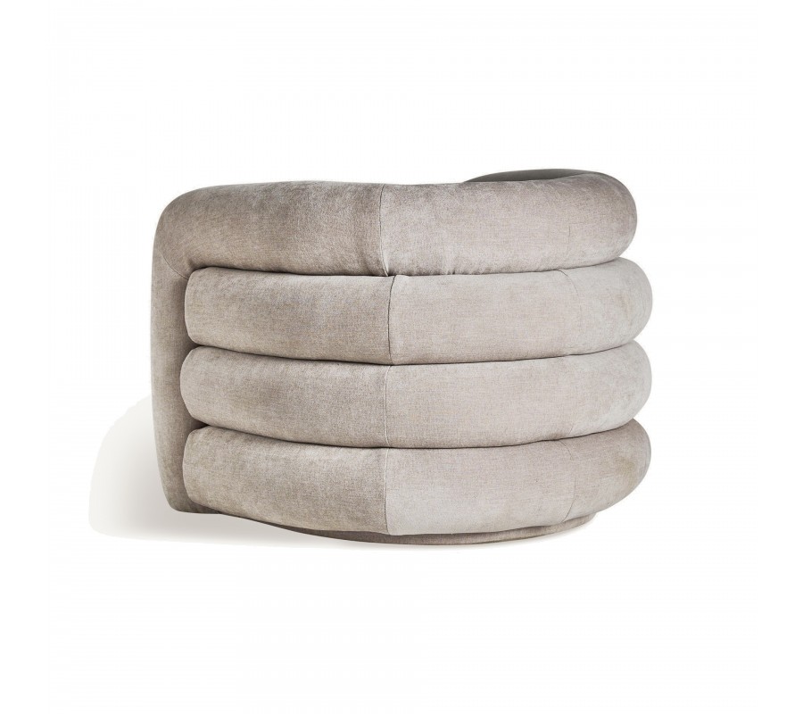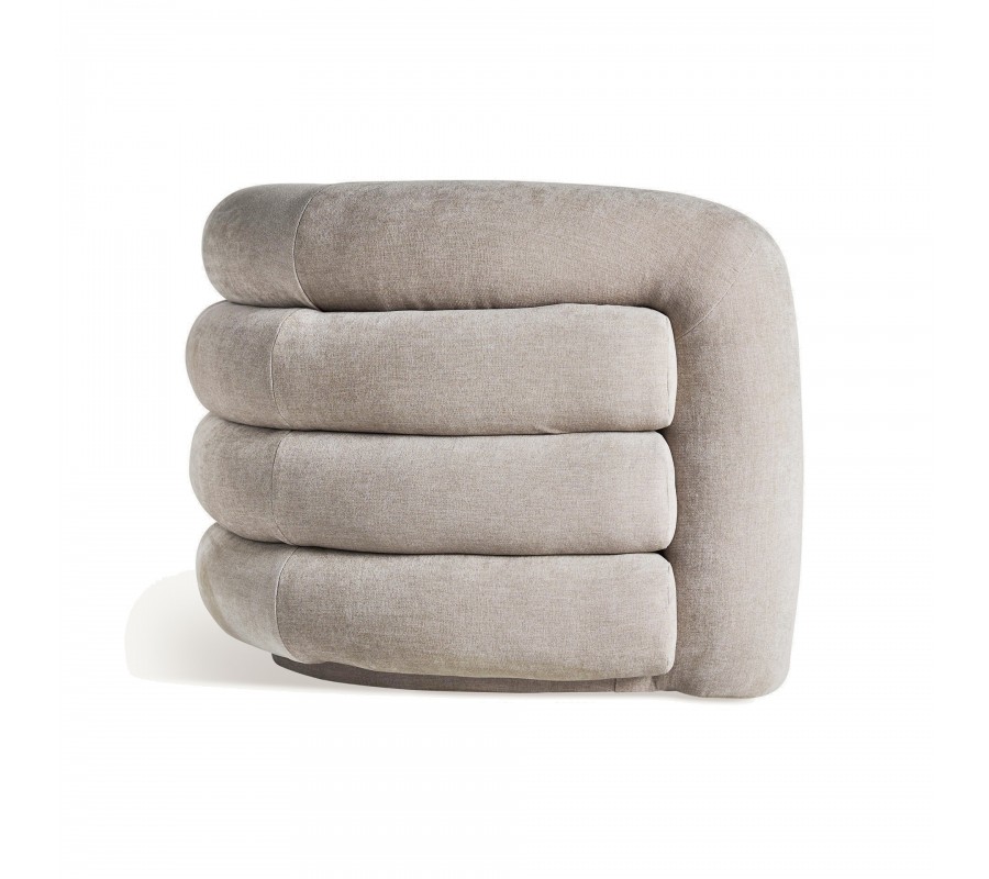 Zažite dotyk elegancie a pohodlia s art-deco kreslom Vala, ktoré je dokonalým spojením sivo béžovej elegancie a výnimočného dizajnového prešívanie. Poťah je vyrobený z vysokokvalitnej zamatovej látky a pridáva do každého interiéru nádych sofistikovanosti a estetiky art deco štýlu, charakteristickej pre obdobie 20. rokov minulého storočia. Jedinečnosť kresla Vala je zdôraznená výrazným horizontálnym prešívaním chrbtovej opierky, ktoré evokuje obraz harmoniky a pridáva celkovej konštrukcii výrazný vizuálny rozmer. Toto prešívanie zvyšuje estetickú hodnotu kresla a umocňuje efekt mäkkosti a pohodlia, čím vytvára ideálne miesto na relaxáciu a odpočinok. Kreslo Vala je viac než len sedačka, je to umelecké dielo, ktoré odráža precízne remeselné spracovanie a lásku k detailom. Vankúšikový efekt chrbtovej opierky, v kombinácii s bohatým prešívaním, poskytuje nielen estetický, ale aj funkčný aspekt, zaručujúc nadštandardné pohodlie pri každom použití. Či už hľadáte doplnok do svojej obývačky, spálne alebo pracovne, art-deco kreslo Vala je ideálnou voľbou pre tých, ktorí ocenia nadčasový dizajn, pohodlie a kvalitu. Toto kreslo je skutočnou pýchou každého moderného domova.