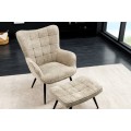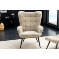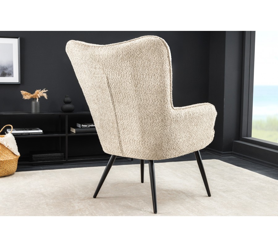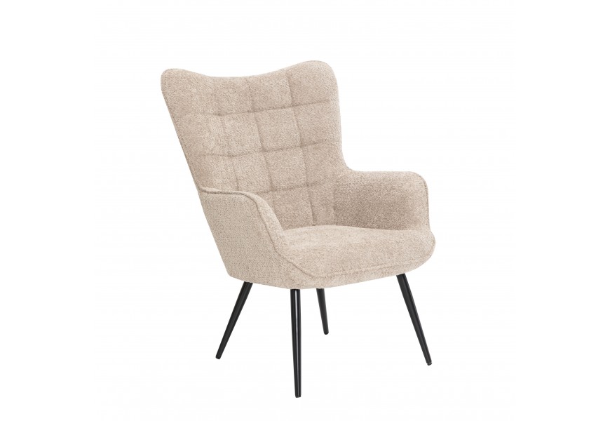Moderné dizajnové kreslo ušiak Scandinavia s poťahom z buklé látky v sivo bielej farbe s ozdobným prešívaním 98 cm
