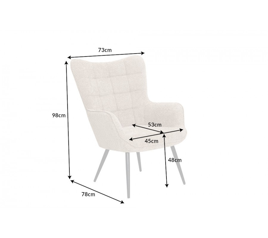 Moderné kreslo Scandinavia si vás získa maximálnym komfortom. Dizajnu dominuje penové čalúnenie s poťahom z buklé látky, ktorá dodáva kreslu zaujímavú štruktúru a útulný mäkký vzhľad. Pohodlné opretie vám zaručí vysoká zakrivená chrbtová opierka. Jej oblé tvary príjemne kontrastujú s lineárnym prešívaním tvoriacim moderný štvorcový vzor. Sivobielu skvele dopĺňajú zošikmené kovové nožičky s čiernym práškovým nástrekom, ktorý im dodáva matný vzhľad. Tieto farby sú veľmi univerzálne a poskytujú vám široké možnosti zaradenia do interiérov v nadčasových neutrálnych odtieňoch, alebo kombinácie s výraznými pestrými farbami. Nožičky môžete prepojiť s nábytkom s podobnými tmavými kovovými prvkami a do priestorov zariadených v industriálnom štýle tak vnesiete mäkký a útulný prvok. Svetlá farba je tiež skvelou voľbou do obývačky zariadenej v škandinávskom štýle, kde môžete pridať vzorovaný vankúš, alebo koberec. V našej ponuke tiež nájdete podnožku Scandinavia s rovnakým čalúnením, čo vám pomôže pri zariaďovaní príjemného kútika na čítanie.