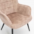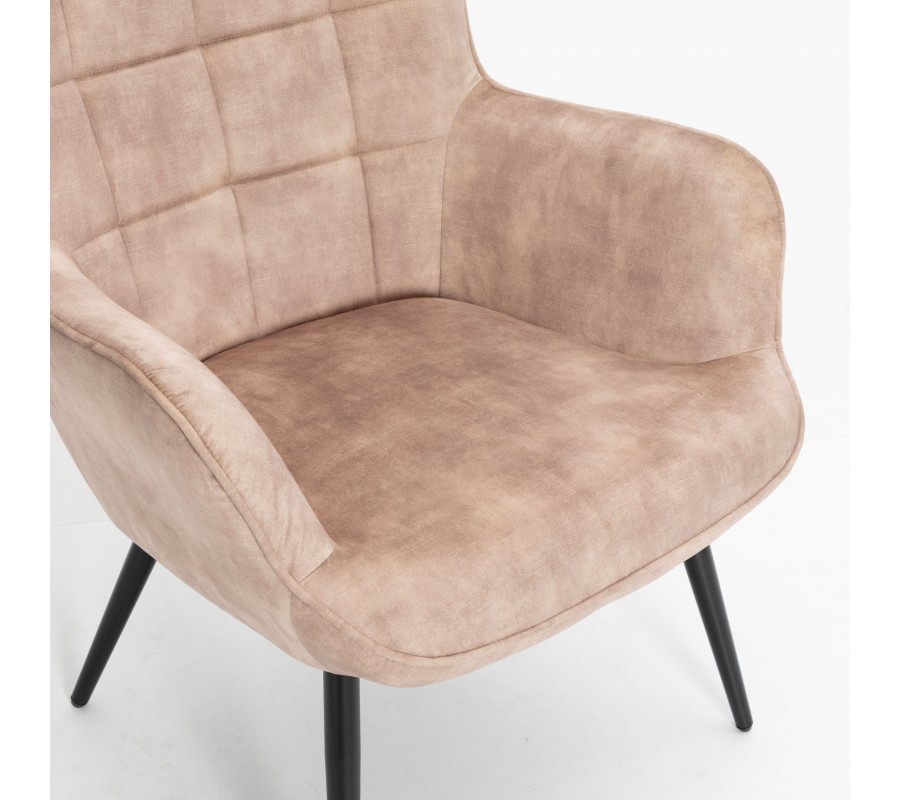 Moderné kreslo Scandinavia v sebe spája eleganciu s komfortom. Dizajnu dominuje výnimočná svetlá béžová farba v odtieni šampanského. Jej jemné tóny skvele dopĺňajú sofistikovanú siluetu so zakrivenou opierkou a luxusný zamatový povrch poťahu, ktorý je veľmi príjemný na dotyk a zároveň vďaka materiálu z mikrovlákna nevyžaduje náročnú údržbu. Moderné lineárne prešívanie vytvárajúce štvorcový vzor vytvára príjemný estetický kontrast. Pohodlné sedenie aj na dlhší čas, napríklad pri čítaní, vám zaručí vysoká chrbtová opierka a mäkké penové čalúnenie. Takýto oddychový kútik tiež odporúčame doplniť podnožkou Scandinavia s rovnakým čalúnením, ktorú nájdete v našej ponuke. Kreslo má zošikmené kovové nožičky s čiernym práškovým náterom, ktorý im dodáva matný vzhľad. Môžete ich prepojiť s konferenčným stolíkom s podobnými tmavými kovovými prvkami. Šampanskú béžovú v kombinácii s lesklým zamatovým povrchom môžete tiež doplniť nábytkom v art deco štýle s lesklými zlatými prvkami. Kreslo sa vďaka svojej univerzálnej farebnej palete hodí do priestorov zariadených v neutrálnych odtieňoch, kde svojím poťahom vnesie zaujímavú štruktúru, no tiež môžete pridať aj výraznejšie farebné doplnky.