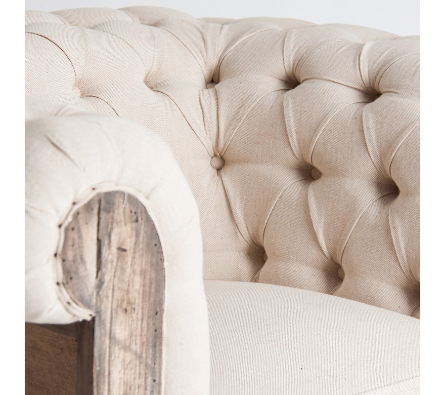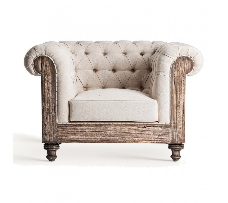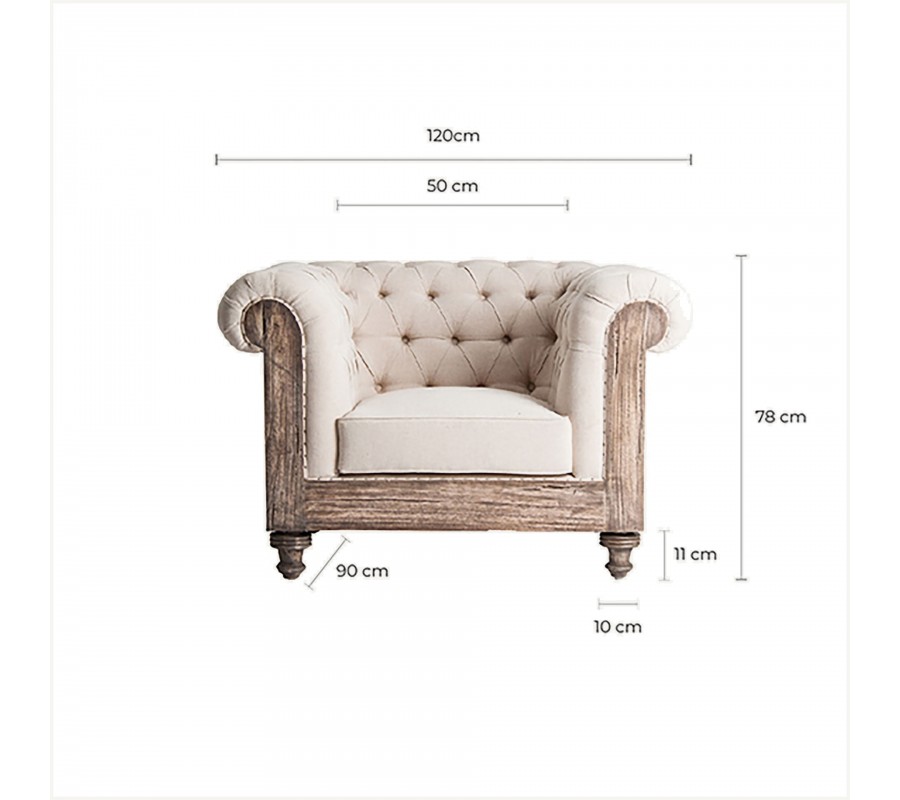 Luxusné béžové vintage kreslo Gretchen v chesterfield štýle s drevenou konštrukciou 113 cm