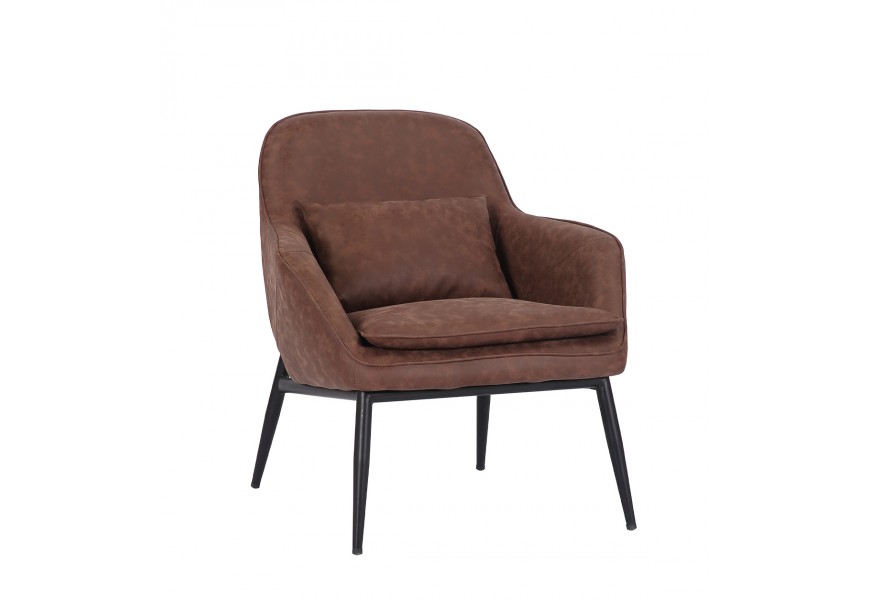 Moderné industriálne kreslo Lawrence s hnedým poťahom z ekokože so zámerne zostarnutým efektom 83 cm