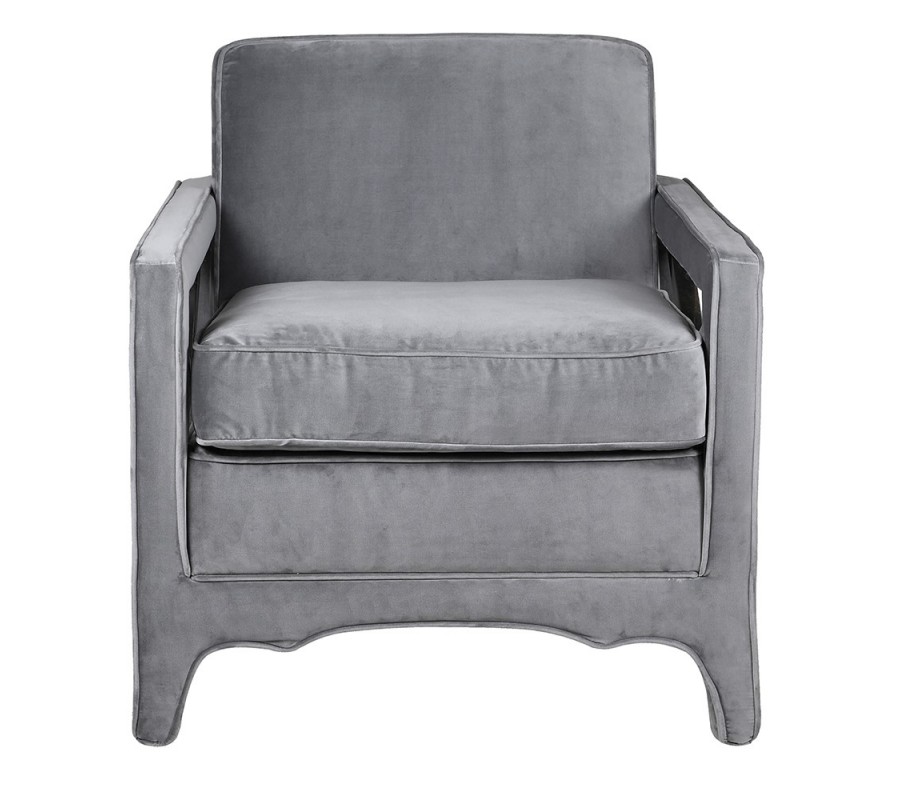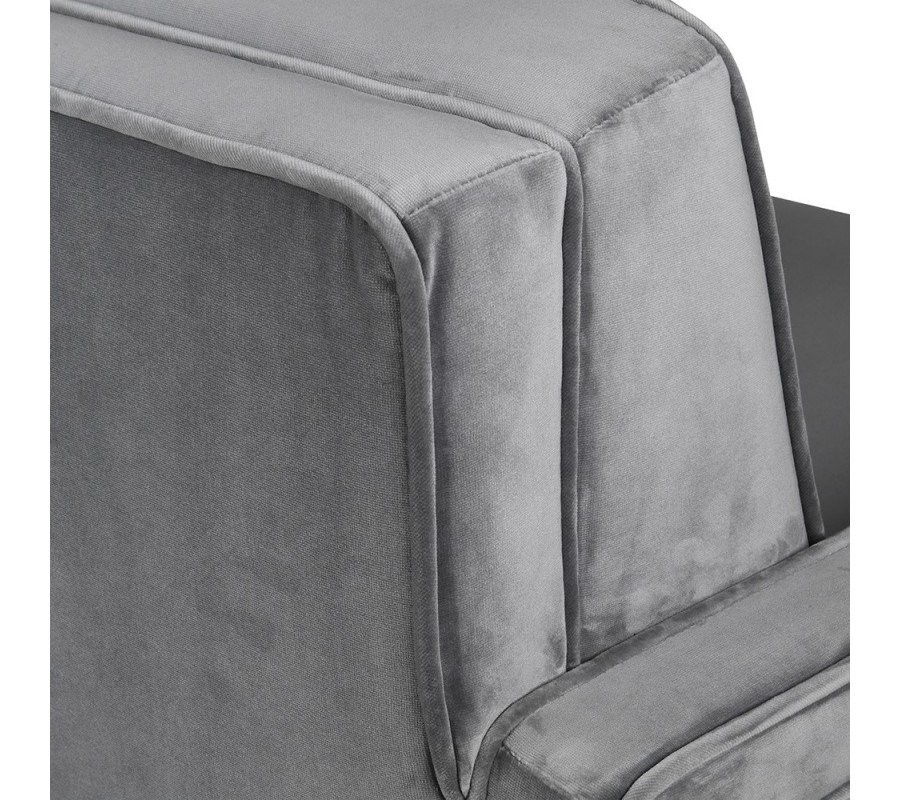 Luxusné art deco kreslo Palace so sivým zamatovým čalúnením a opierkami v lesklom chrómovom prevedení 76 cm