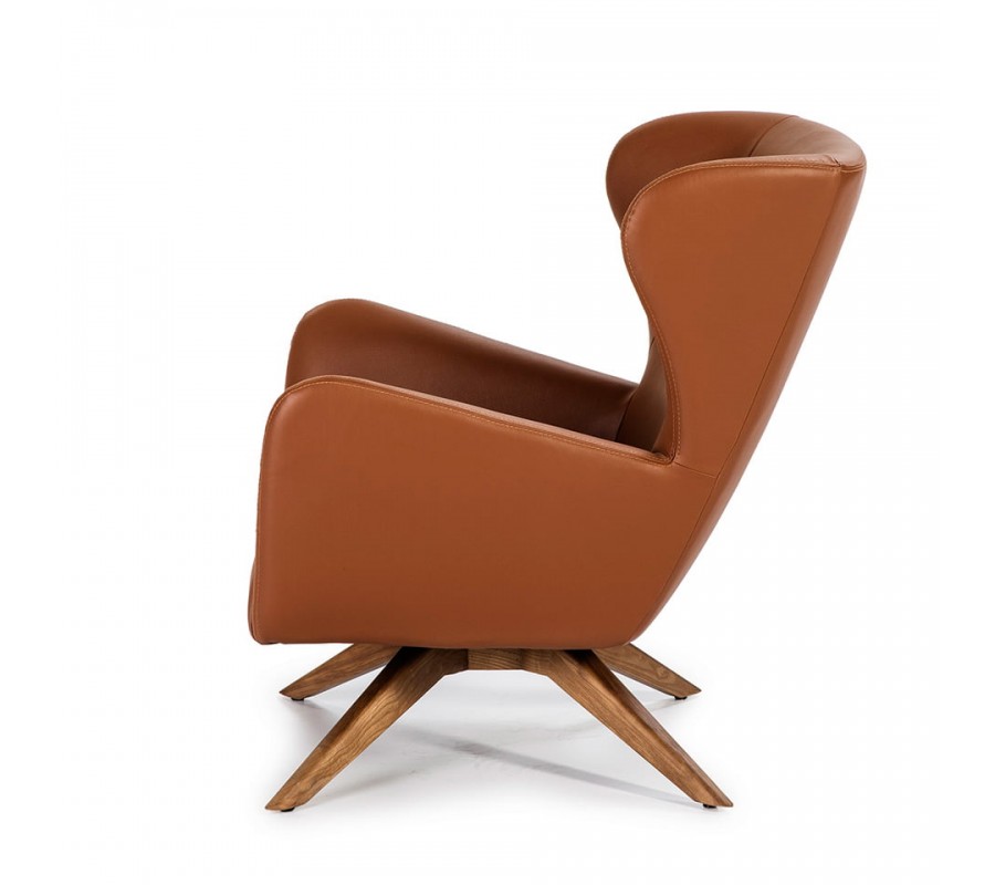 Luxusné kožené otočné kreslo ušiak Vita Naturale s koňakovo hnedým poťahom a drevenými nožičkami 90 cm