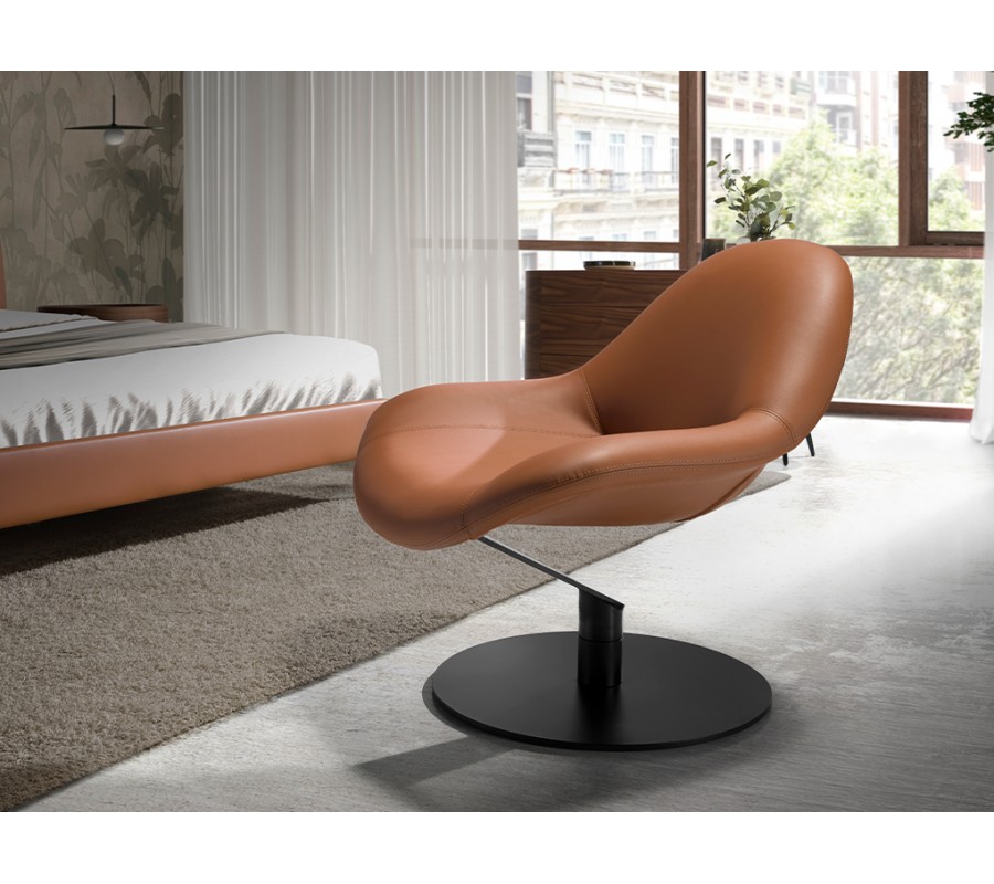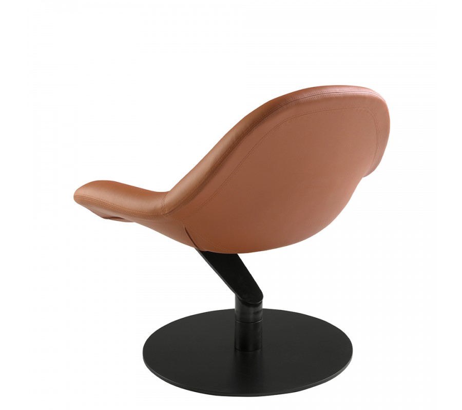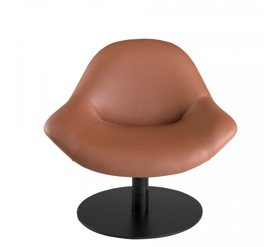 Luxusné moderné otočné kreslo Forma Moderna s koňakovo hnedým poťahom z ekokože a čiernou okrúhlou podstavou 86 cm