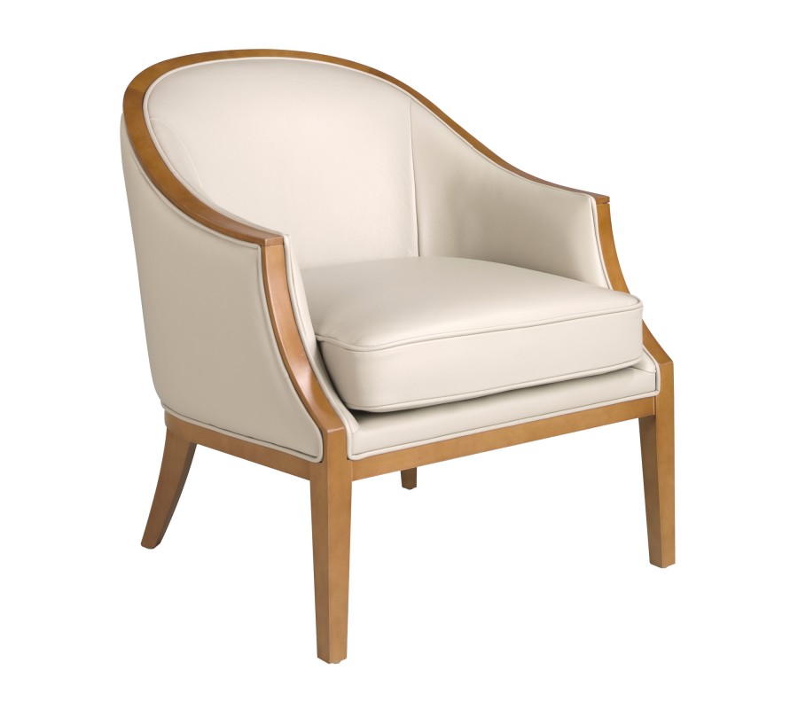 Silueta kresla pôsobí sofistikovaným dojmom a jej zaoblené línie s výraznými rohmi čerpajú inšpiráciu z nábytku v klasickom štýle. Dizajnu dominuje poloblúková opierka, ohraničujúca zadnú a bočné strany. Najvyššia je v chrbtovej časti a pozvoľnom klesaní elegantne plynie do bočných opierok. Tie sú ukončené vo výraznom uhle, kde prechádzajú do zakrivenej vertikálnej hrany, ktorá sa v ďalšom výraznom uhle láme do rovnej línie predných nožičiek. Sedadlo je na spodnej časti tiež lemované dreveným rámom, na ktorý sa pripájajú šikmé zadné nožičky. Na sedacej časti je umiestnený hrubý vankúš s penovým čalúnením, ktorý vám zabezpečí maximálny komfort.