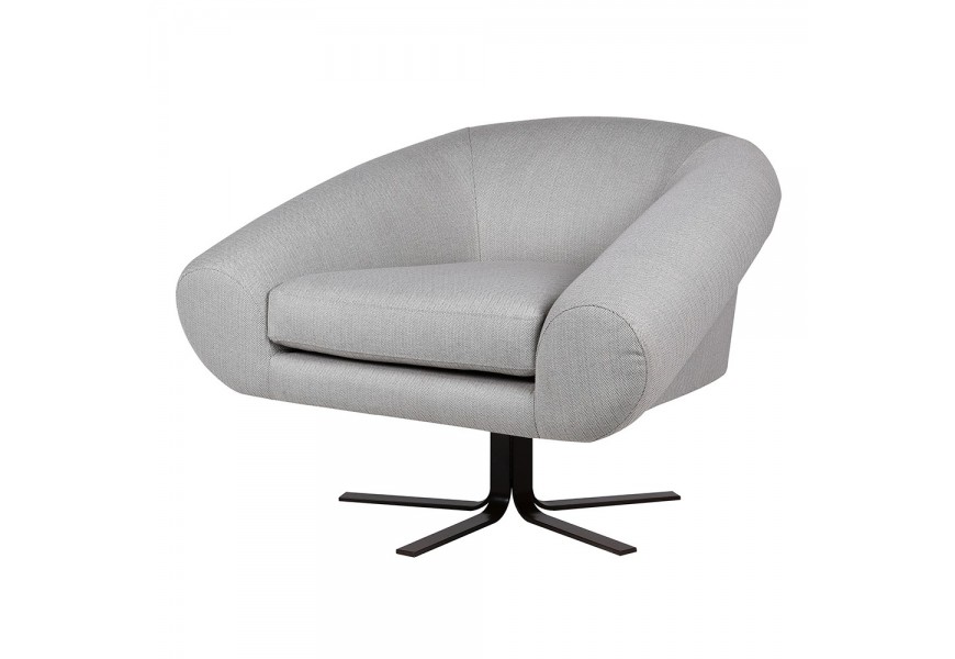 Dizajnové moderné otočné kreslo Sage so sivým zamatovým poťahom so vzorom rybej kosti a čiernou kovovou nohou 96 cm