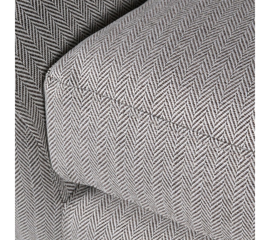 Štýlové moderné otočné kreslo Sage kombinuje eleganciu a praktickosť s vysokým komfortom, pričom jeho jemné, zaoblené línie a čistý dizajn pridávajú do obývačky sofistikovaný prvok. Zamatový poťah v svetlosivej farbe s jemným vzorom rybej kosti dodáva kreslu nielen estetickú príťažlivosť, ale aj príjemný dotyk.