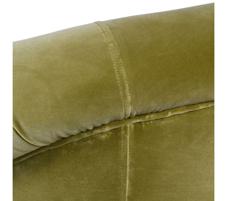 Moderné otočné kreslo Sage prinesie do vašej obývačky výrazný dizajnový prvok a pohodlie zároveň. Jeho zaoblený tvar a elegantné línie vytvárajú estetickú príťažlivosť, pričom zamatový poťah v olivovo zelenej farbe dodáva kreslu sofistikovaný vzhľad a príjemný pocit na dotyk.
