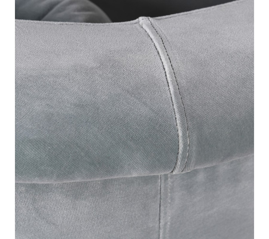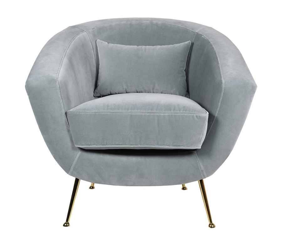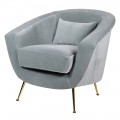 Kreslo Stella prináša do interiéru elegantný dizajn, ktorý kombinuje zamatový poťah s lesklými zlatými nožičkami, čo je typická kombinácia pre art deco štýl. Kreslo v jemnom odtieni svetlosivej farby s modrastými podtónmi, pôsobí sofistikovane a príjemne na dotyk. Táto kombinácia lesklých povrchov a zamatového čalúnenia z mikrovlákna pridáva kreslu nádych luxusu a dokonale zapadne do interiérov v glamour štýle.