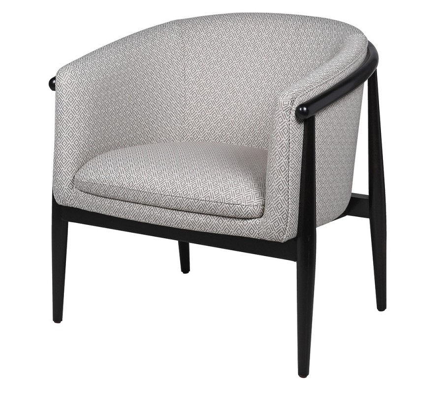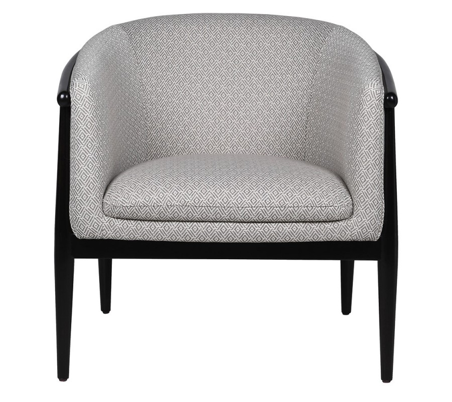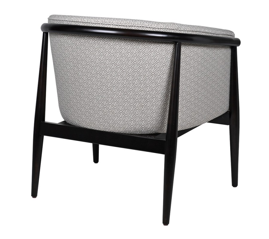 Luxusné dizajnové kreslo Diana s čiernym dreveným rámom a sivým textilným poťahom s diamantovým vzorom 74 cm