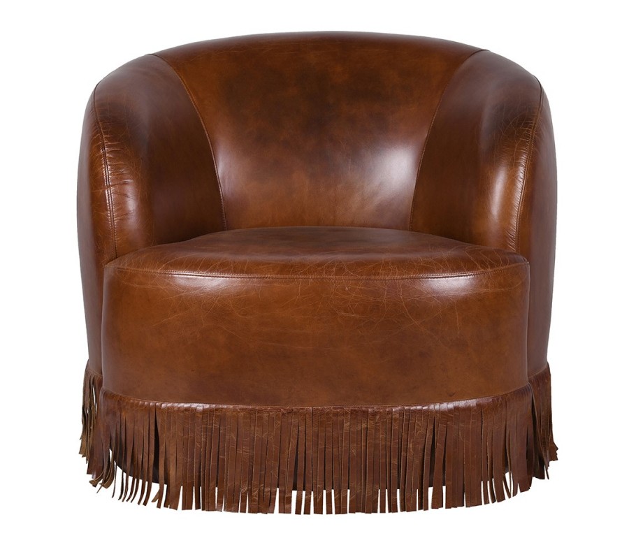 Luxusné kreslo Texas s hnedým poťahom z pravej kože s dekoratívnymi strapcami 76 cm