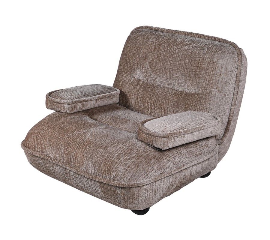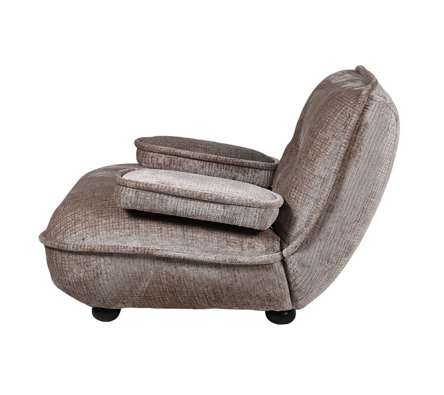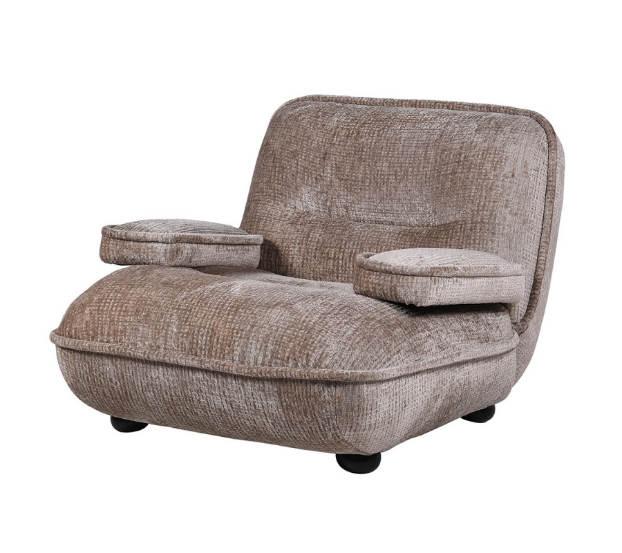 Kreslo Harea svojím dizajnom stelesňuje maximálny komfort. Jeho mohutná silueta pôsobí neodolateľne útulným dojmom, zatiaľ čo mäkká poťahová látka v odtieni taupe dodáva nábytku nádych elegancie.