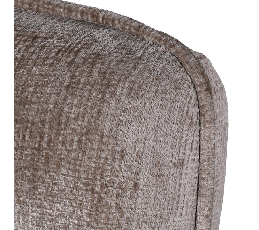 Textilný poťah má výraznú štruktúru s vyšším vlasom, ktorý je príjemný na dotyk a prináša do dizajnu vizuálnu hĺbku. Prevedenie v odtieni taupe sa pohybuje na pomedzí hnedej a sivej. Samotný názov taupe pochádza z francúzštiny a označuje sa tak druh krtka s touto charakteristickou farbou.