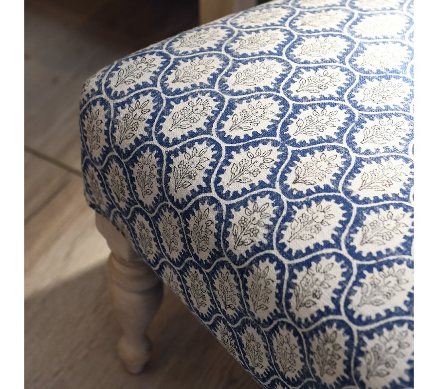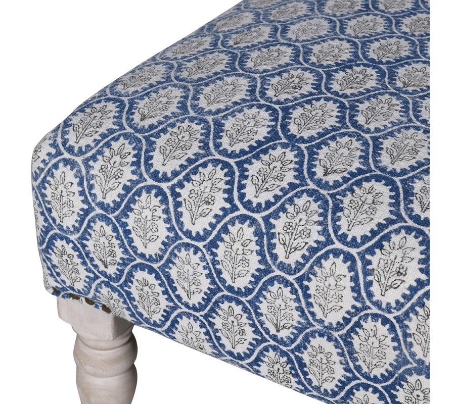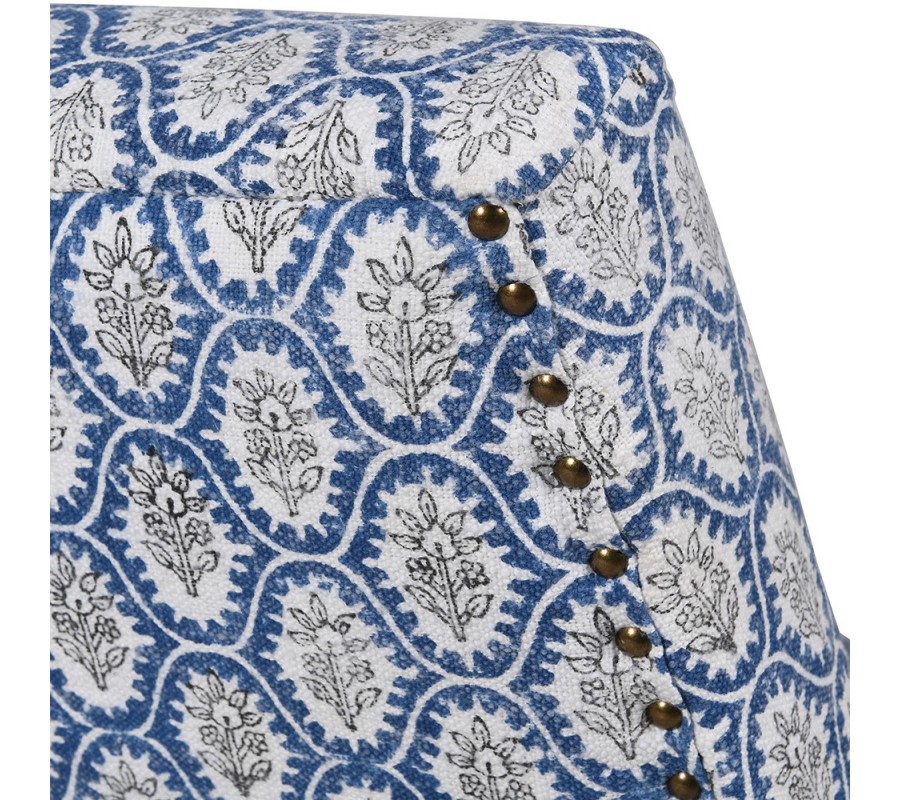 Na prvý pohľad vás očarí poťah v bielej a kobaltovej modrej farbe. Symetrický geometrický vzor pozostávajúci z elegantných kriviek obohacuje florálny motív, ktorý podčiarkuje vidiecky štýl. Poťah je vyrobený zo 100% bavlny. Tento prírodný materiál je priedušný a príjemný na dotyk. Pohodlné sedenie vám zaručí aj mäkké penové čalúnenie.