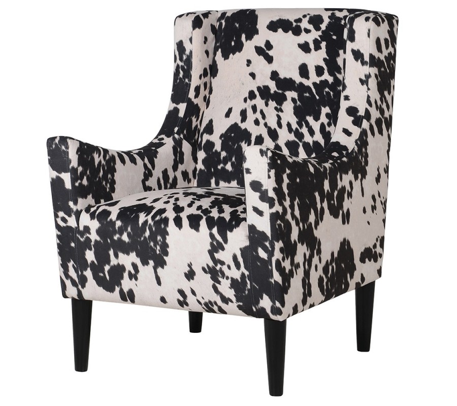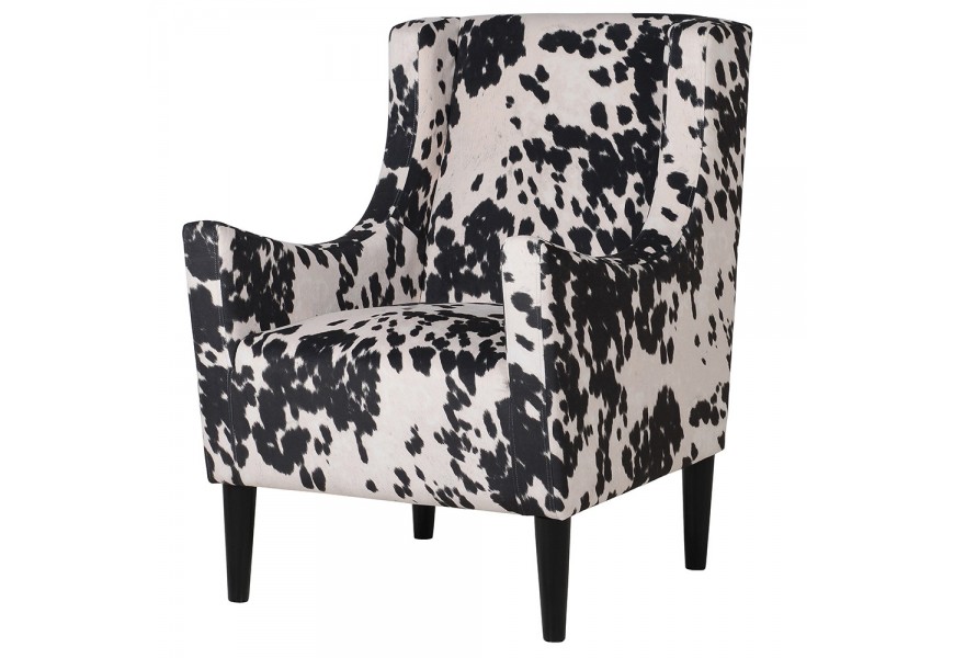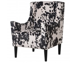 Dizajnové moderné čalúnené kreslo Holstein s poťahom s dizajnom čierno-bielej kravskej kože 98 cm